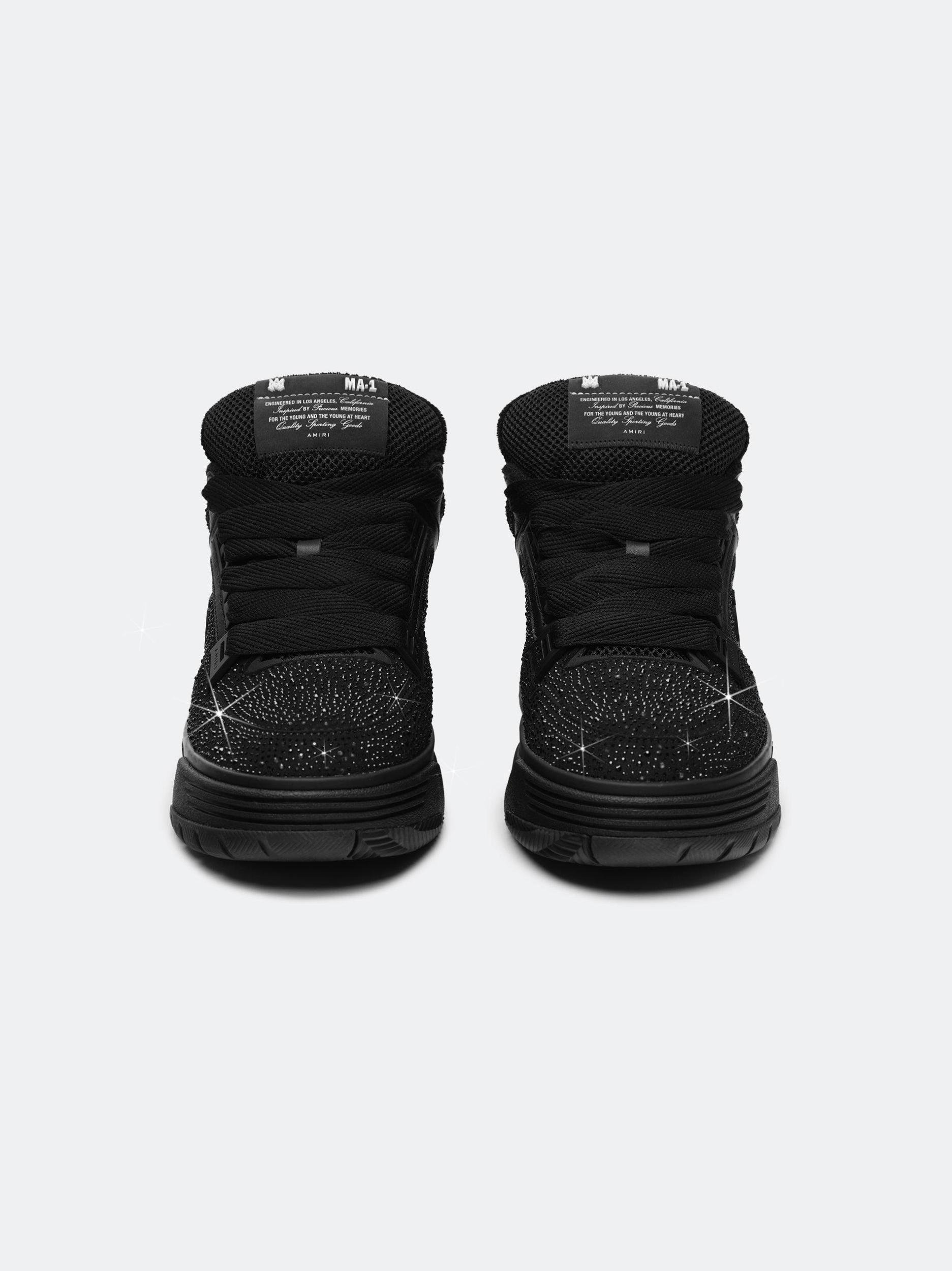 The MA-1, an ode to the bold, amplified sneaker silhouettes of '90s West Coast skate renegades, appears in seasonal fabrications for Pre-Fall 2024. The Crystal MA-1 is crafted on an exaggerated rubber outsole with a crystal-embellished leather upper and features house logos on the side and back with double lace fastening. PRE-FALL 2024 COLLECTION MADE IN VIETNAM UPPER :50% PU+50%NYLON UPPER : 100% COW LEATHER UPPER : 100% POLYESTER