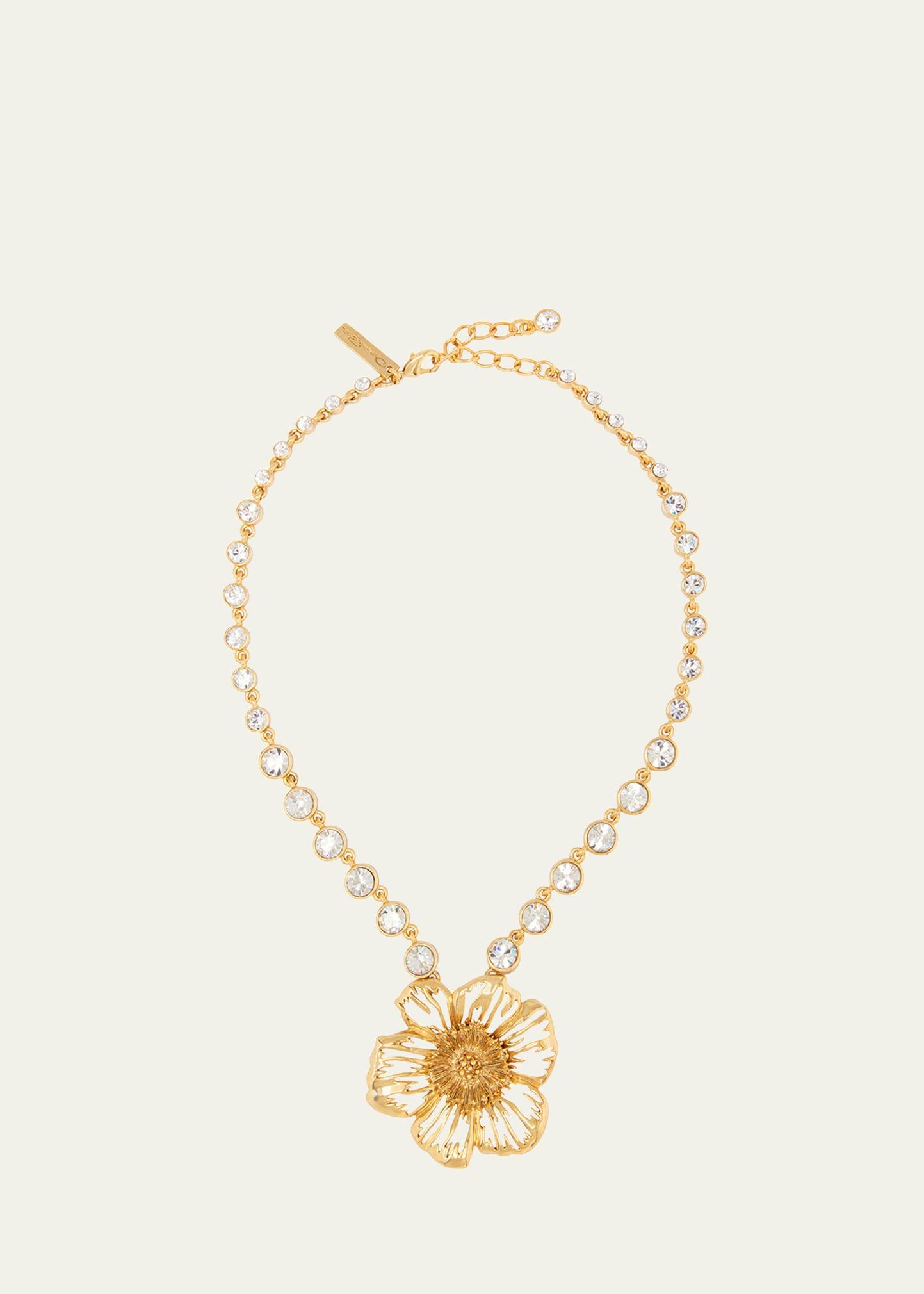 Crafted of goldtone metal set with shimmering round glass crystals, Oscar de la Rentas necklace features an oversized poppy pendant. Glass crystals Pewter/brass Lobster clasp Made in USA SIZE Adjustable 20-22L ABOUT THE BRAND After working for some of fashions greatest designers, Oscar de la Renta started his own line in 1965. He was an instant hit, thanks to his penchant for romantic silhouettes in vibrant colors and prints. His iconic legacy lives on through Creative Directors Fernando Garcia and Laura Kims stunning vision for the brands ready-to-wear and accessories. Fashion Jewelry - Trend Jewelry > Oscar De La Renta > Saks Fifth Avenue > Barneys. Oscar de la Renta. Color: Gold.