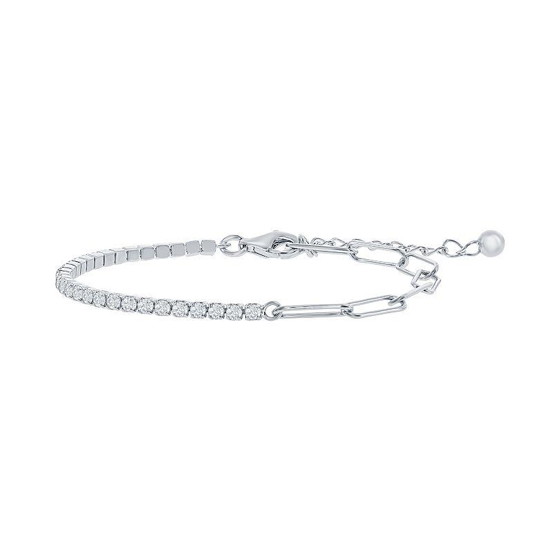 A CLASSIC BRACELET FOR A MODERN WOMAN You deserve jewelry as lovely as you are! Feel beautiful and confident on your special day having this lovely and trendy half tennis and paperclip link bracelet that shimmer and sparkle on your wrist or ankle from multiple angles and create breathtaking reflections further adding elegance to your personality. | Simona Lab Created Sterling Silver 2Mm Half Tennis & 3.5Mm Paperclip Anklet, 9
