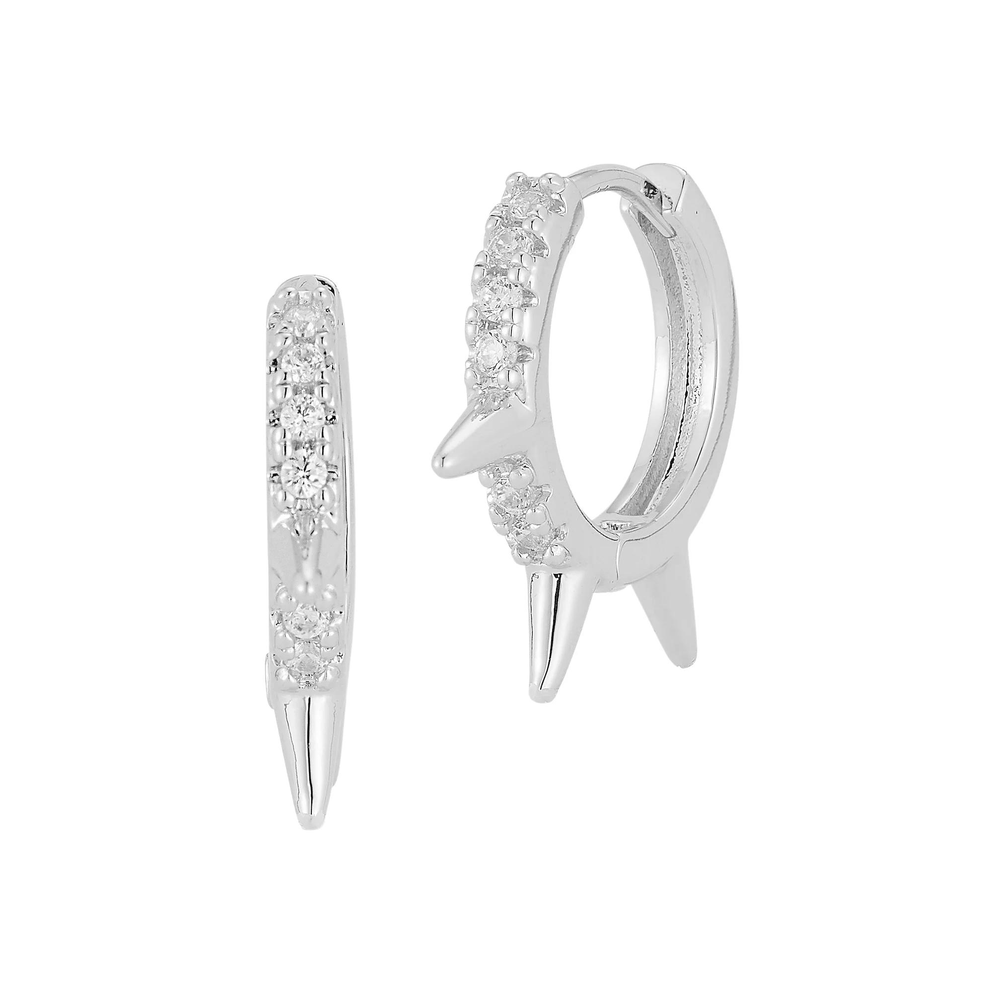 Add a little edge to your ensemble with these Cubic Zirconia Spiked huggie hoop earrings. Click on this JEWELRY & WATCHES GUIDE to learn about fit, styles, materials and more! Add a little edge to your ensemble with these Cubic Zirconia Spiked huggie hoop earrings. Click on this JEWELRY & WATCHES GUIDE to learn about fit, styles, materials and more! FEATURES Length: 0.7-in. Backings: click-it Metal: brass Plating: rhodium, 18k gold Finish: polished Packaging: pouch Imported Nickel freeSTONE DETAILS Stone type: cubic zirconia Stone size: 1.5 mm x 1.5 mm (each) Shape: round Setting: prong Gemstones may have been treated to enhance their appearance. Special care may be required. Please visit our Gemstone Treatment & Special Care Guide for more information. Size: One Size. Color: White. Gender: female. Age Group: adult.