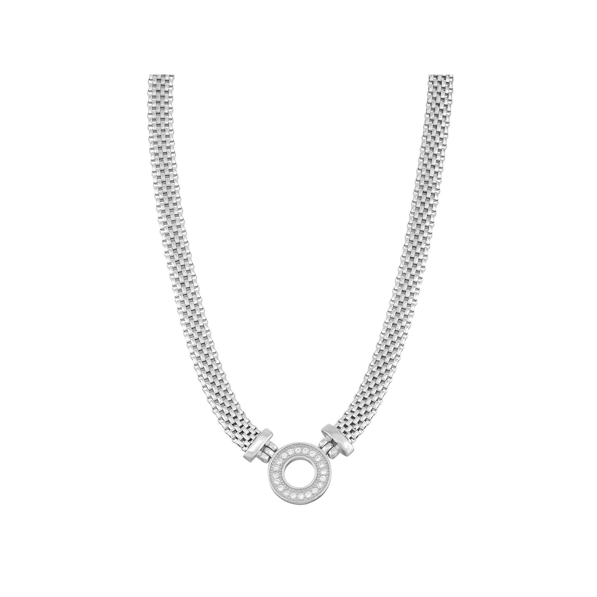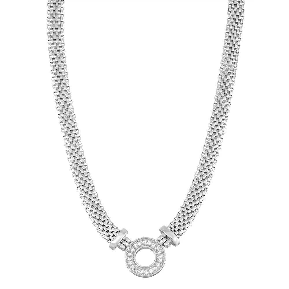 Featuring a circle link with cubic zirconia accents, this mesh necklace offers striking style. Comes in a gift box. NECKLACE DETAILS Length: 16 in. Clasp: lobster-claw Metal: rhodium-plated sterling silver CUBIC ZIRCONIA DETAILS Total weight: 1/3 ct. Shape: round Setting: pave Size: 16. Color: White. Gender: female. Age Group: adult.