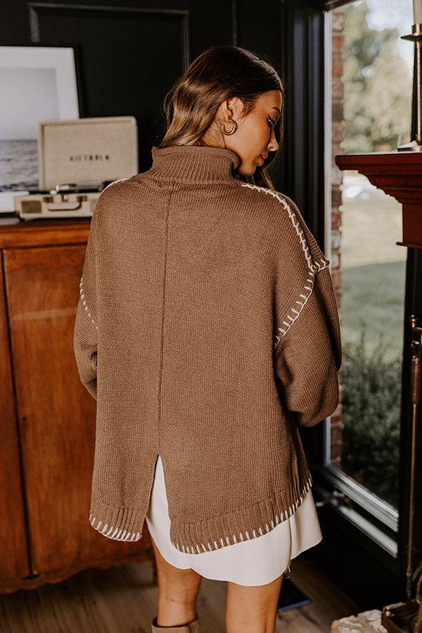 - Embrace sweater season with this adorable piece! Its trendy detailing and warm material create the perfect combination of cozy and charming style. - Knit material - Cream colored stitched accents - Rolled seam accents - A turtle neck with rolled detail - Long sleeves with ribbed cuffs and rolled accents - A relaxed silhouette that ends in a ribbed hemline with an accent slit on the back