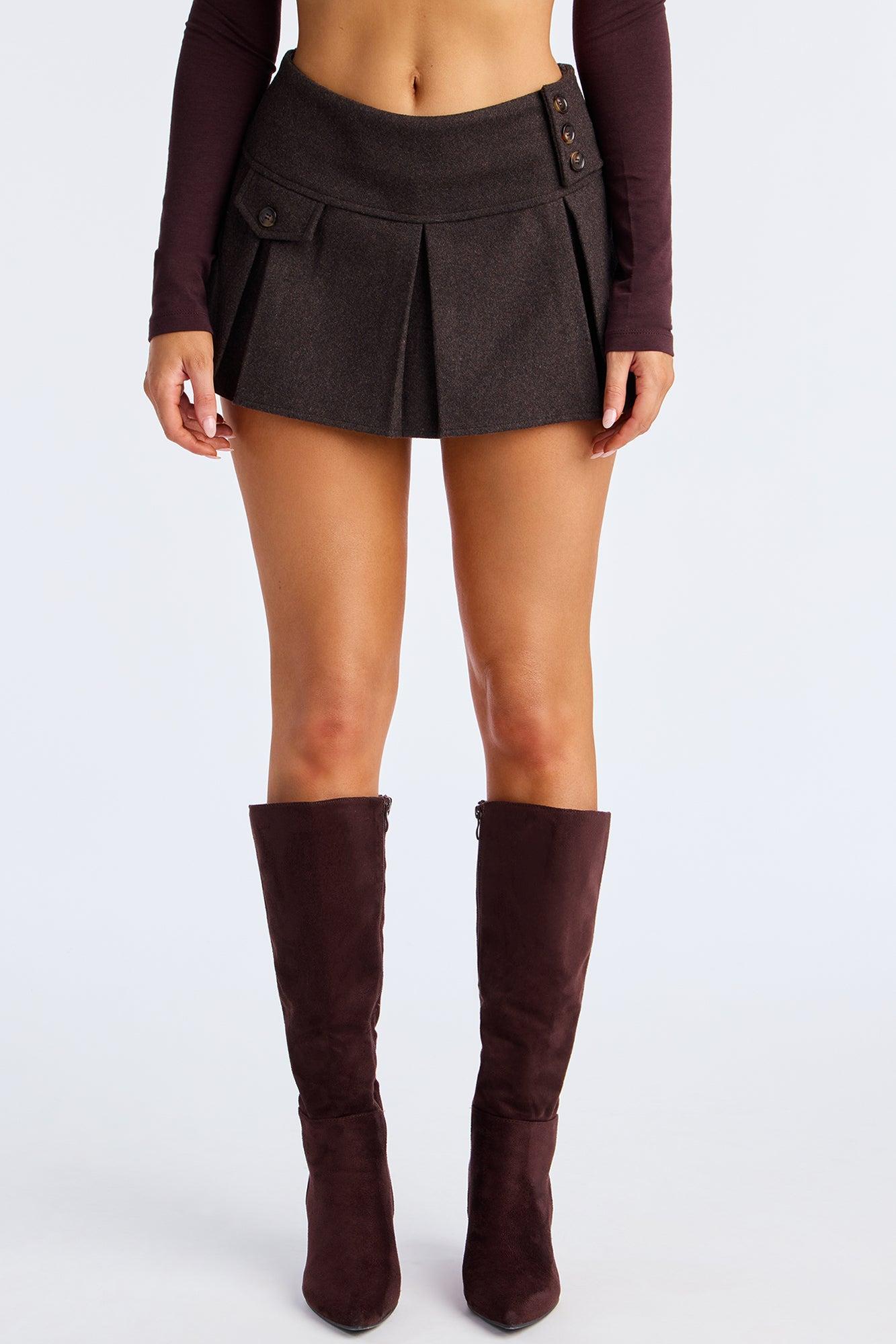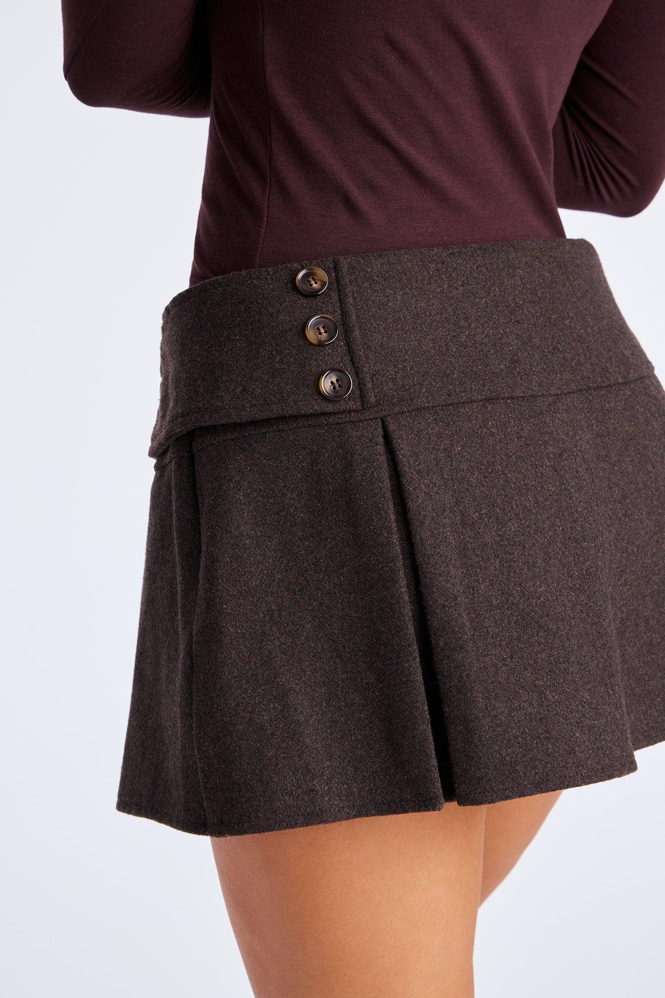 Cuddle Up Wool Pleated Micro Mini Skort - Dark Brown Female