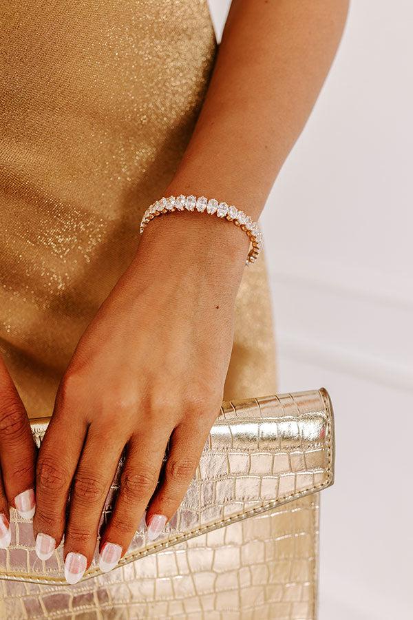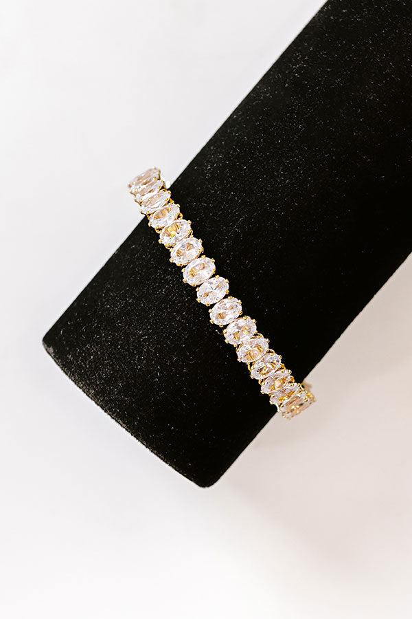 - Go for glam with this shimmering cuff bracelet! It has an eye-catching design and chic energy perfect for elevating any look. - Gold colored metal material - A flexible band with oval shaped cubic zirconia embellishment - Size: 2.5 inch circumference with a flexible fit