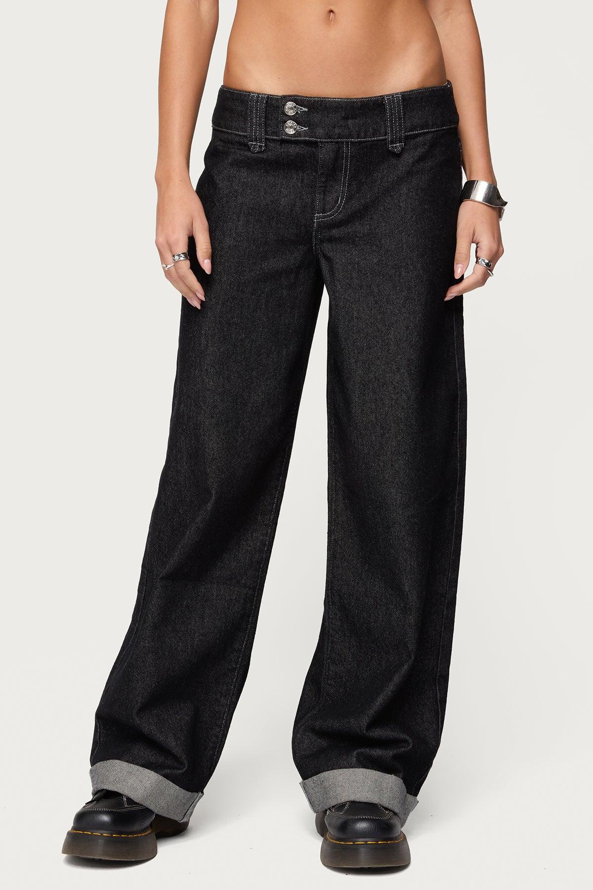 Jeans Low rise waist Straight leg fit Double button closures Cuffed hem Rigid denim fabric 100% Cotton Model wears size S Inseam of size S (in): 31.7 Model height is 5'8 Item care: Machine wash at maximum 30ºC, do not bleach, tumble dry low, iron at a maximum of 110ºC, do not dry clean