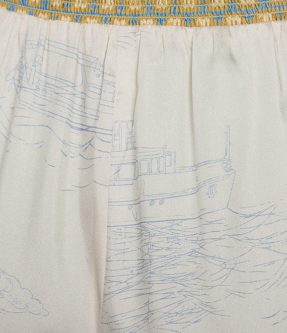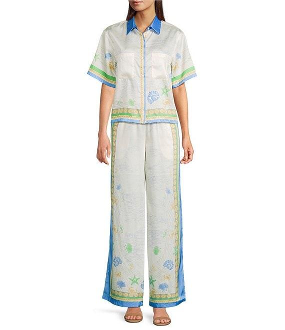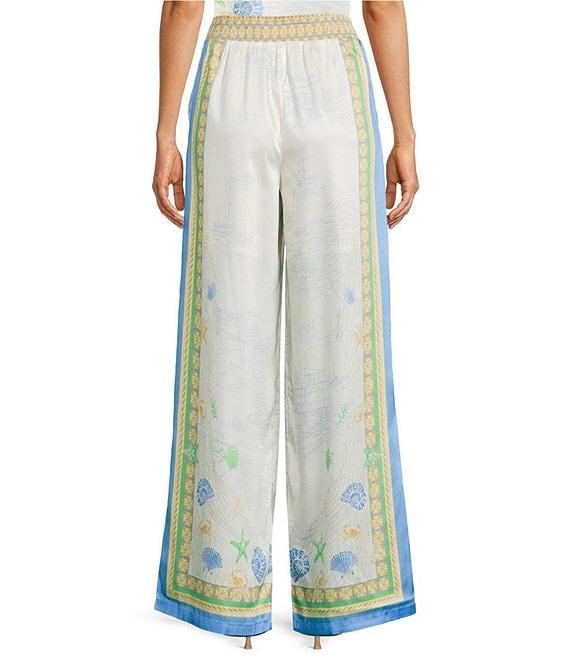Current Air Coastal Border Print Coordinating Smocked Waistband Wide Leg Pants