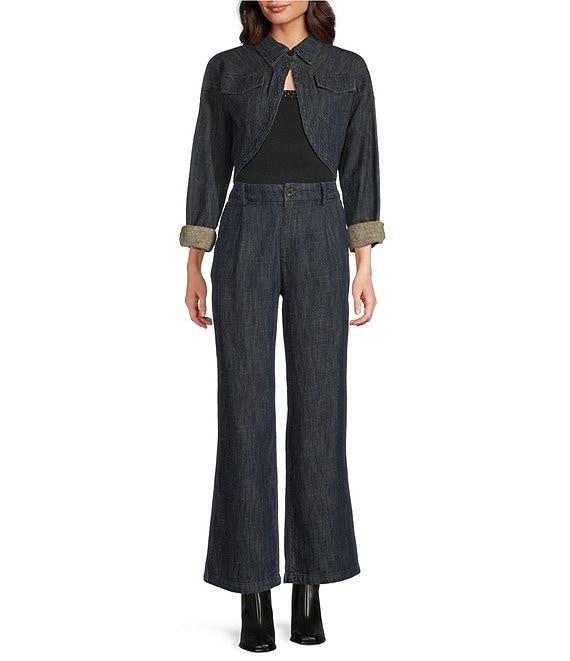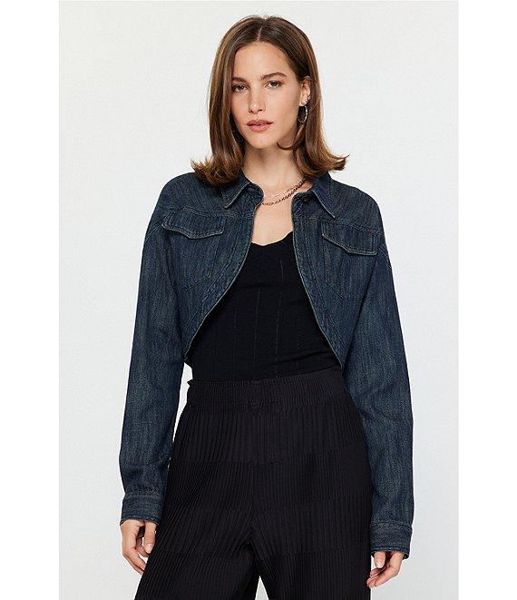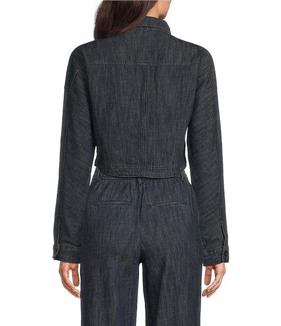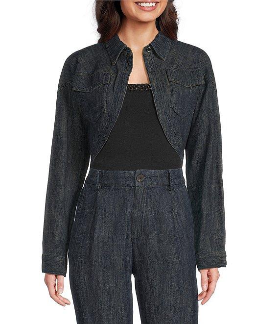 Current Air Denim Point Collar Curved Hem Cropped Jacket
