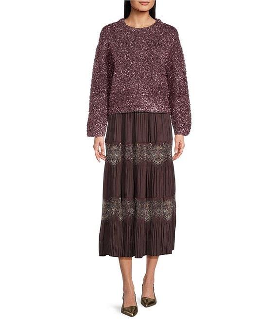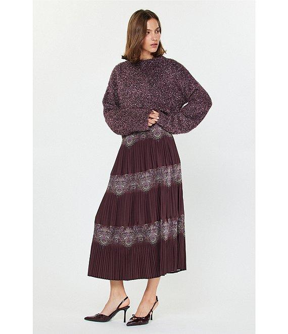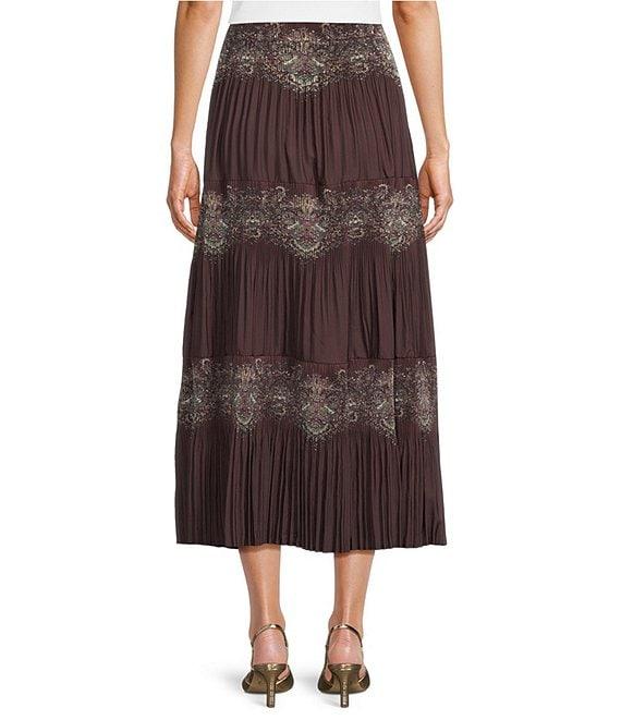 Current Air Paisley Print Pleated Tiered A-Line Midi Skirt
