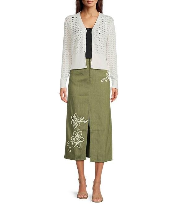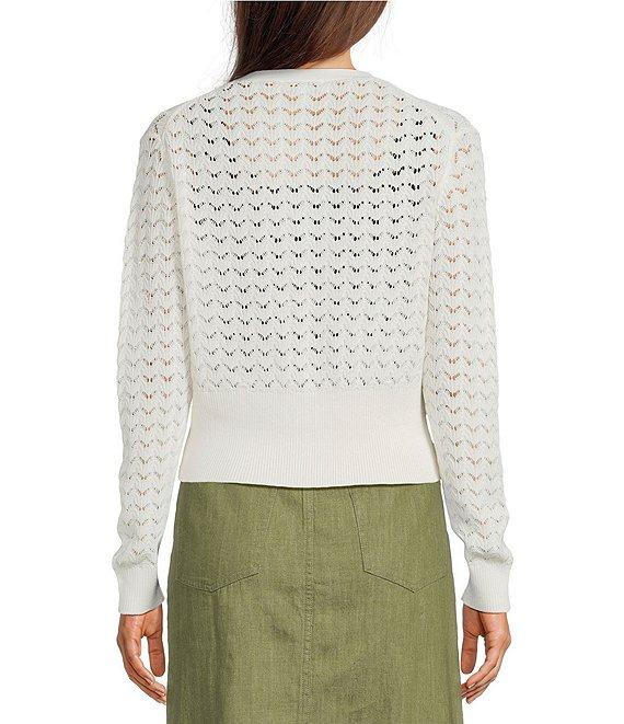 From Current Air, this cardigan features: Sheer knit fabrication V-neck Long sleeve Button front closure Approx. 20" length Cotton/ wool Hand wash inside out/lay flat Imported.