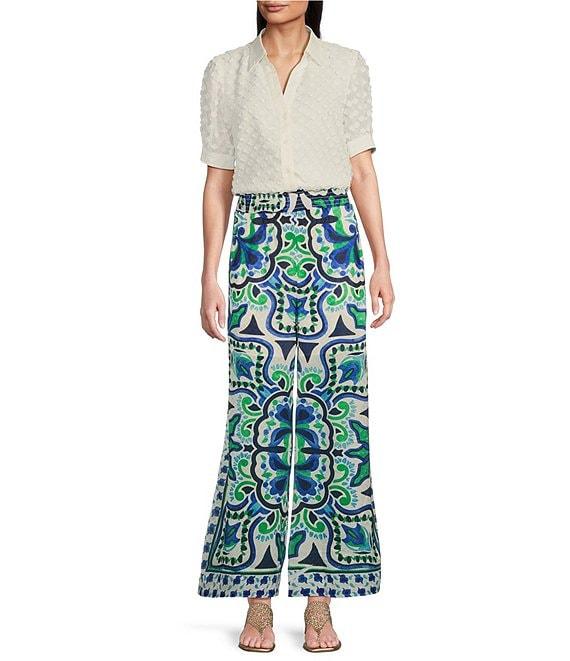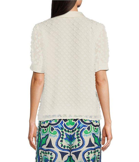 From Current Air, this blouse features:Woven embellished fabrication3D floralSpread collar v-necklineShort sleevesRelaxed fitFully linedStraight hemlineButton front closureApprox. 24.75" lengthCotton/polyester/spandexHand wash / line dryImported.
