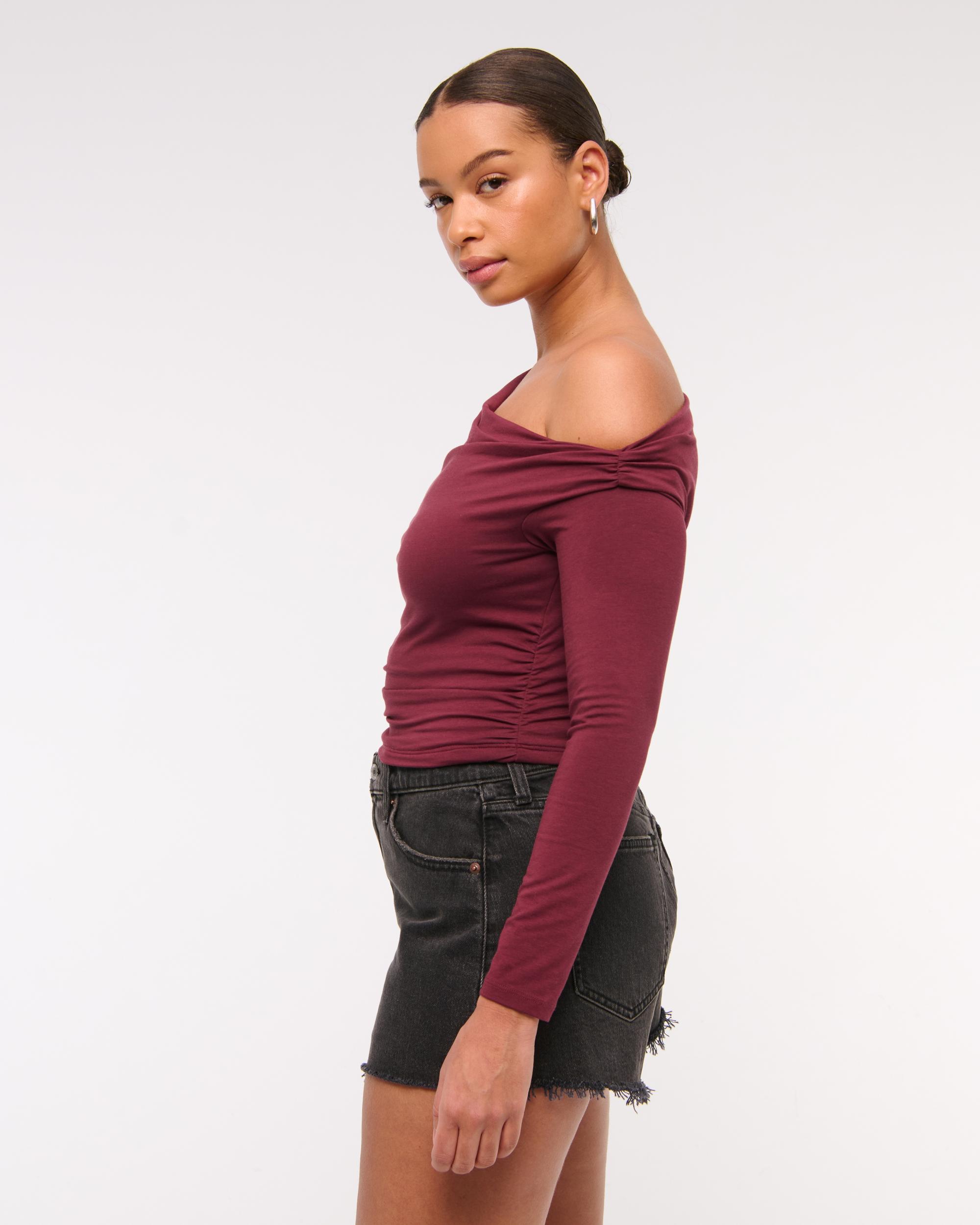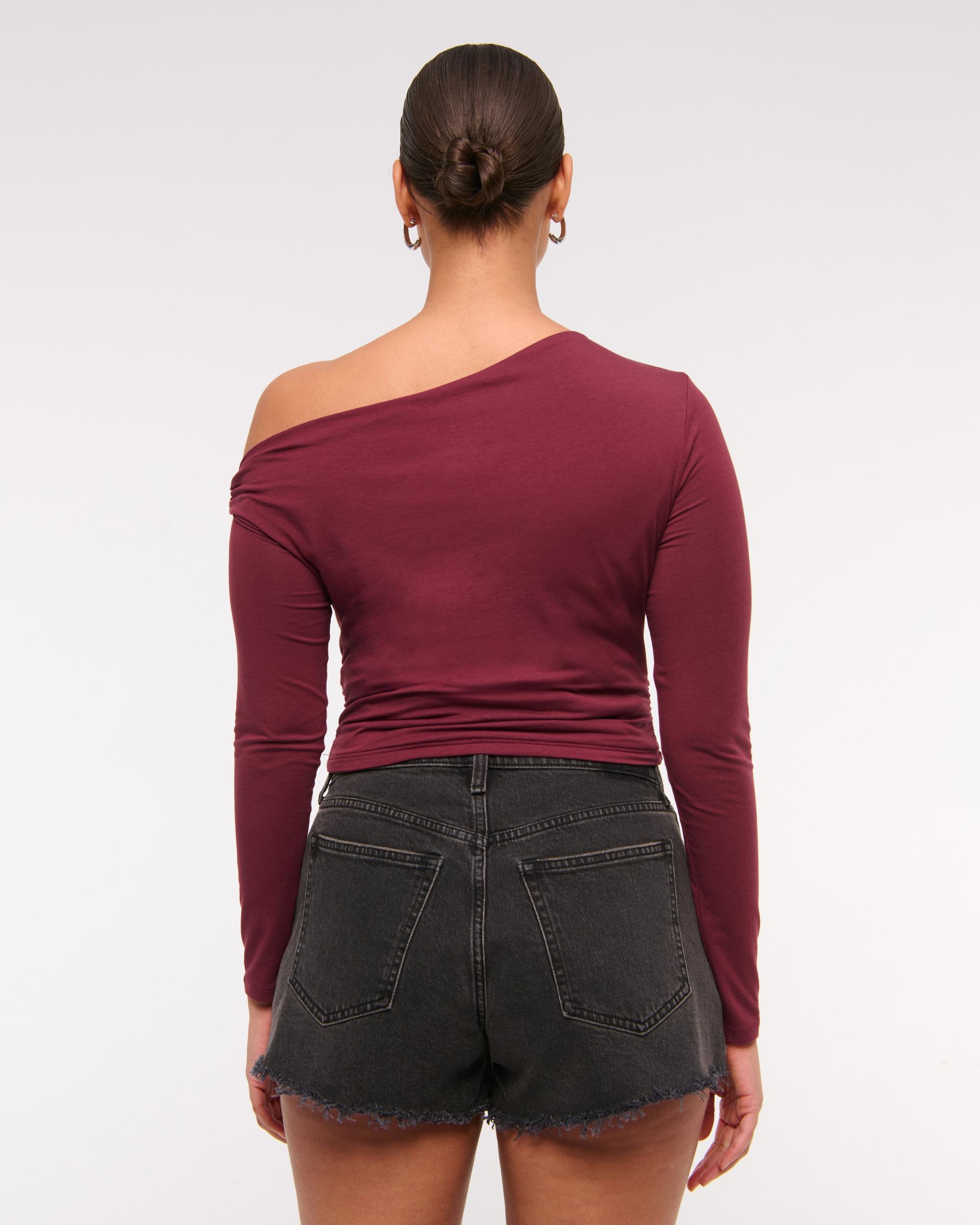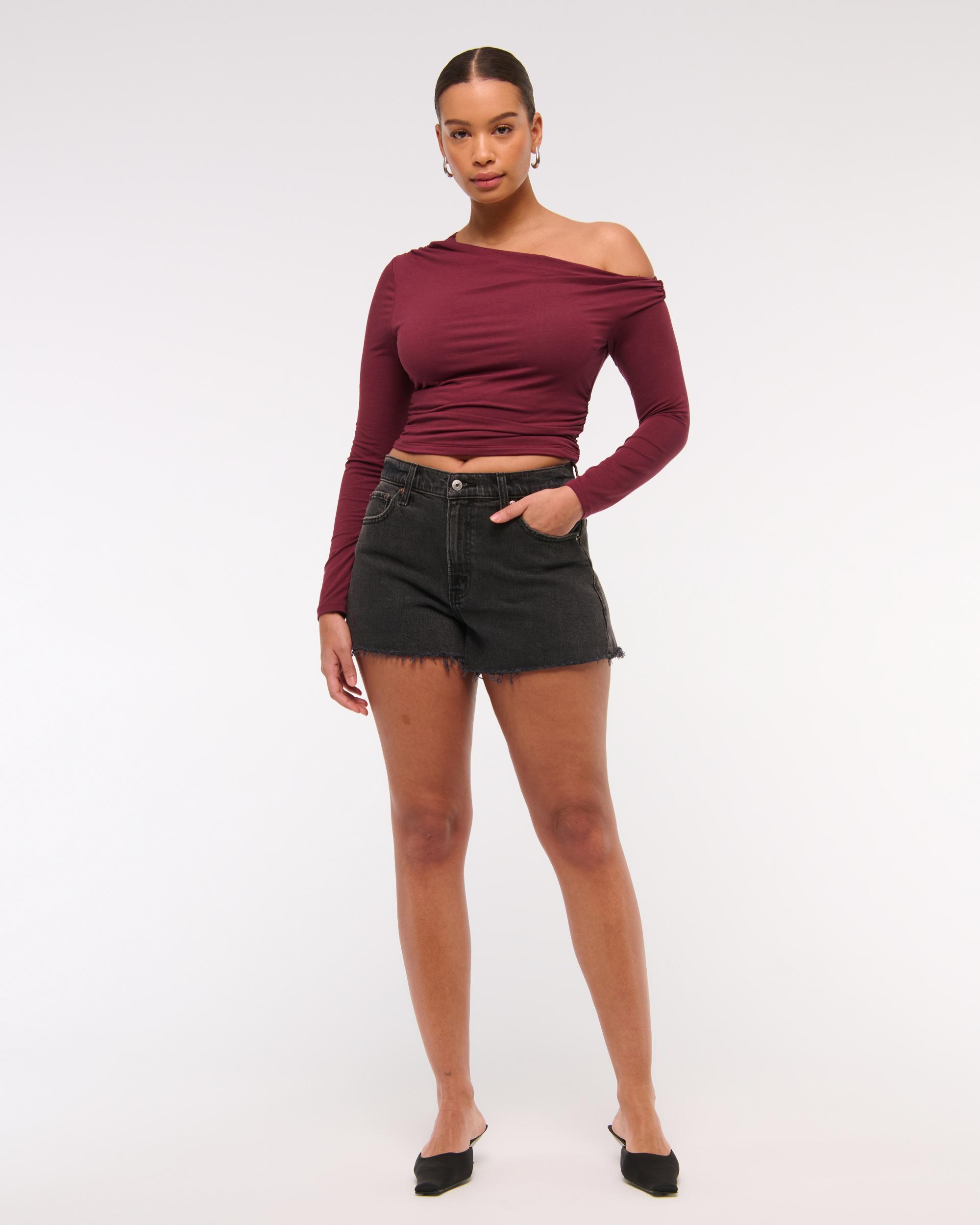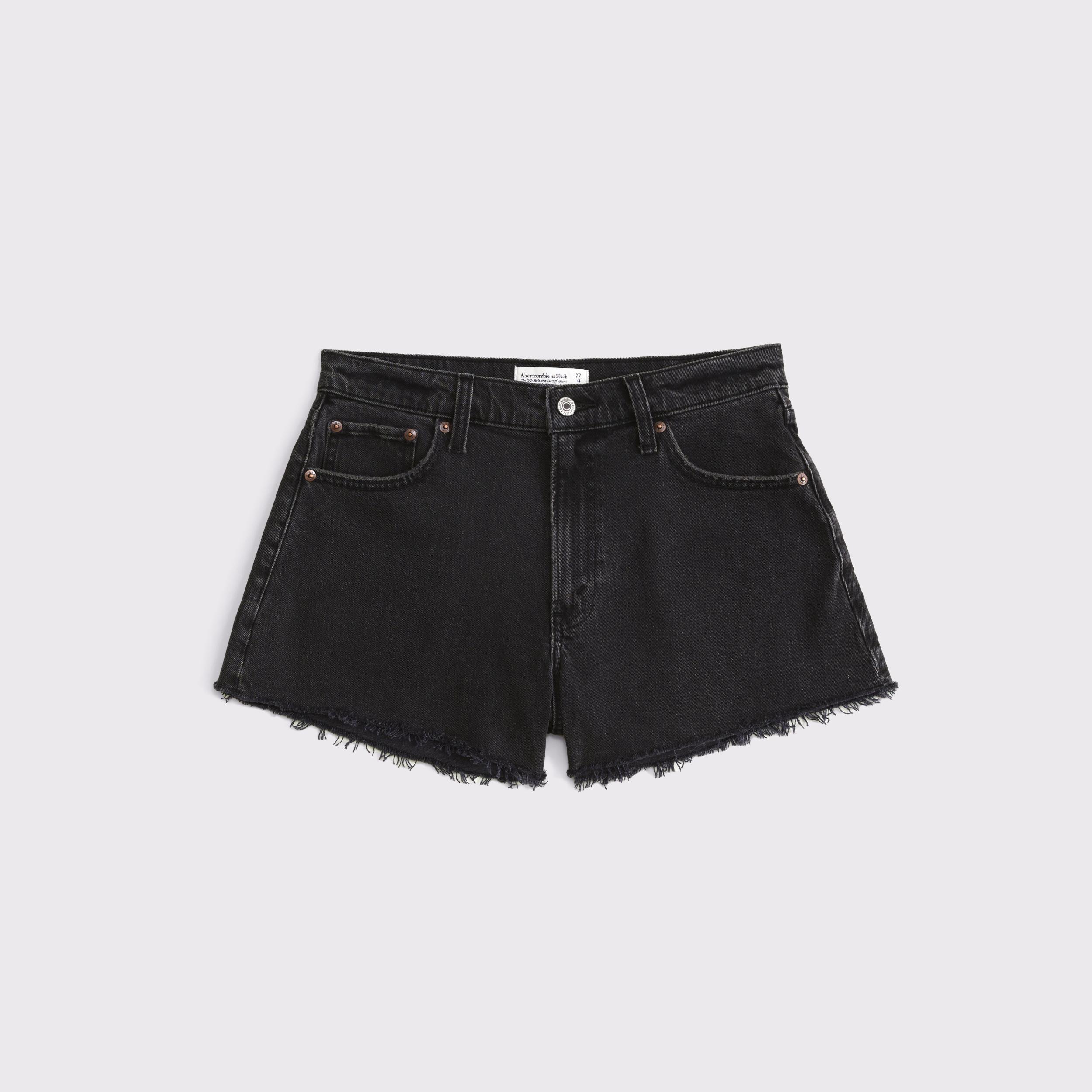 High rise 90's-style denim with a looser fit through the leg and more room through the hip and thigh, and a 3.25 inch (8.25 cm) inseam. The viral fit that eliminates waist gap: Curve Love features additional room through the hip and thigh for curve-hugging comfort. Vintage stretch denim in a black wash, with zipper fly and frayed hem.