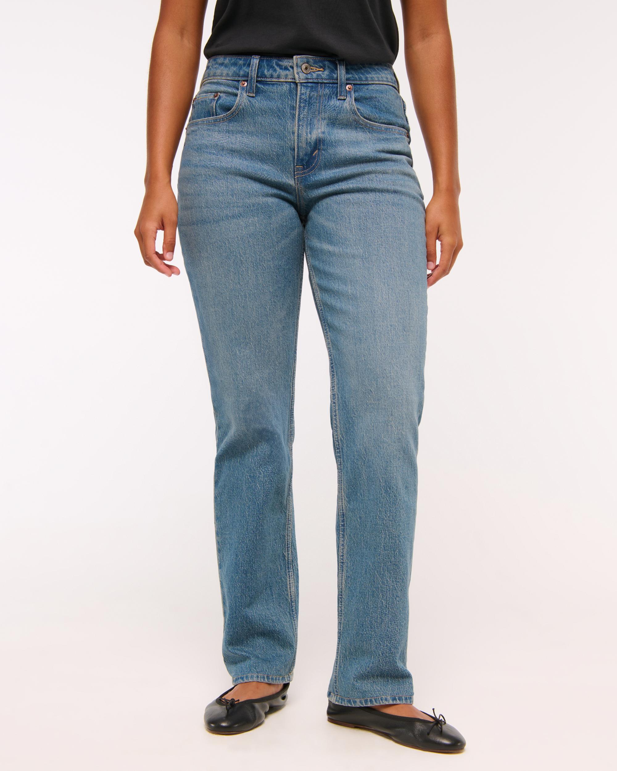 Our Curve Love 90's-style jeans in a medium wash with a clean hem. This fit features a 9.5” mid rise, is fitted at the waist and hips, and eases at the thigh into a straight, full-length leg shape. The viral fit that eliminates waist gap: Curve Love features additional room through the hip and thigh for curve-hugging comfort. This jean is made from our vintage stretch fabric which features both an authentic vintage look and contains slight built-in stretch for additional comfort.