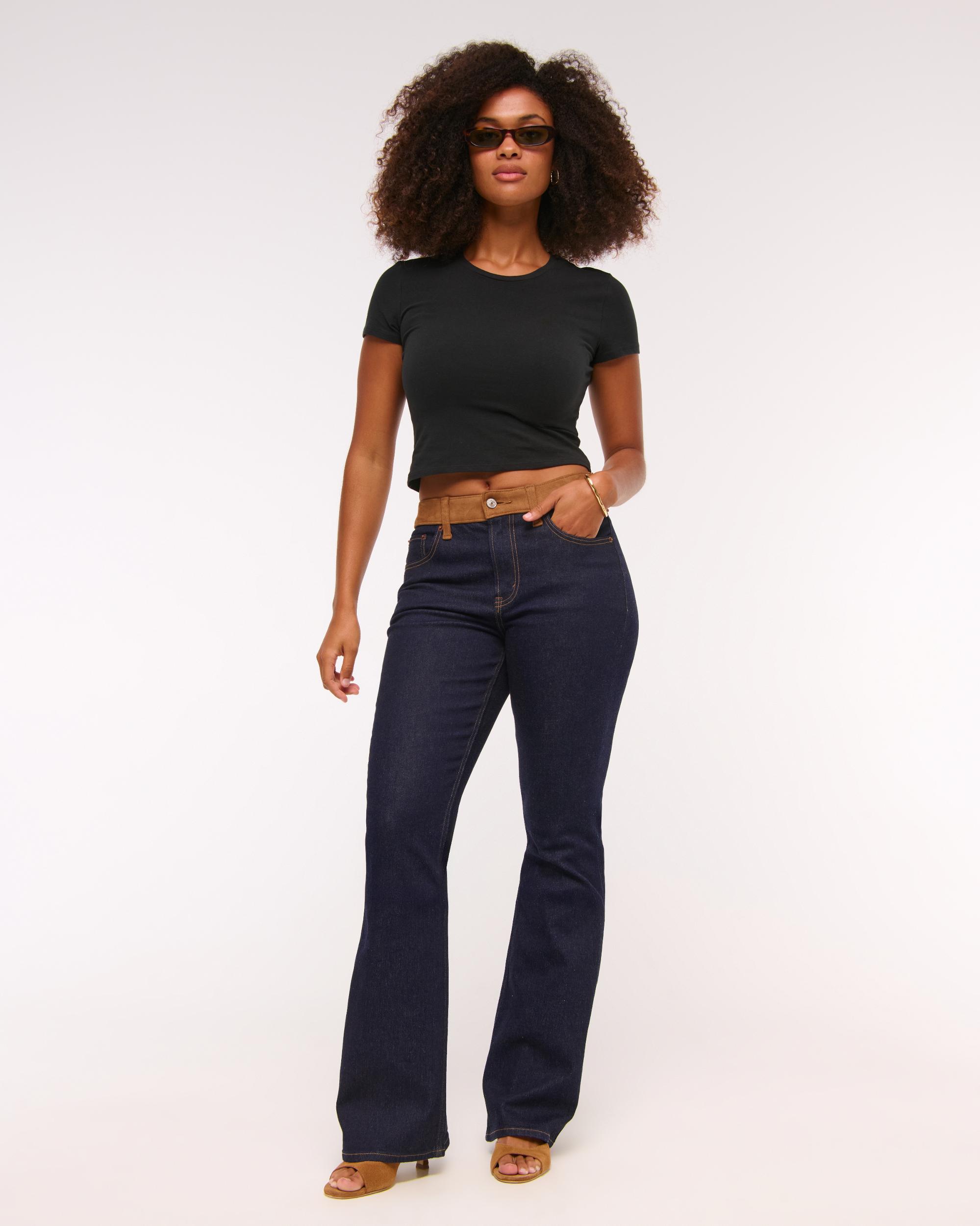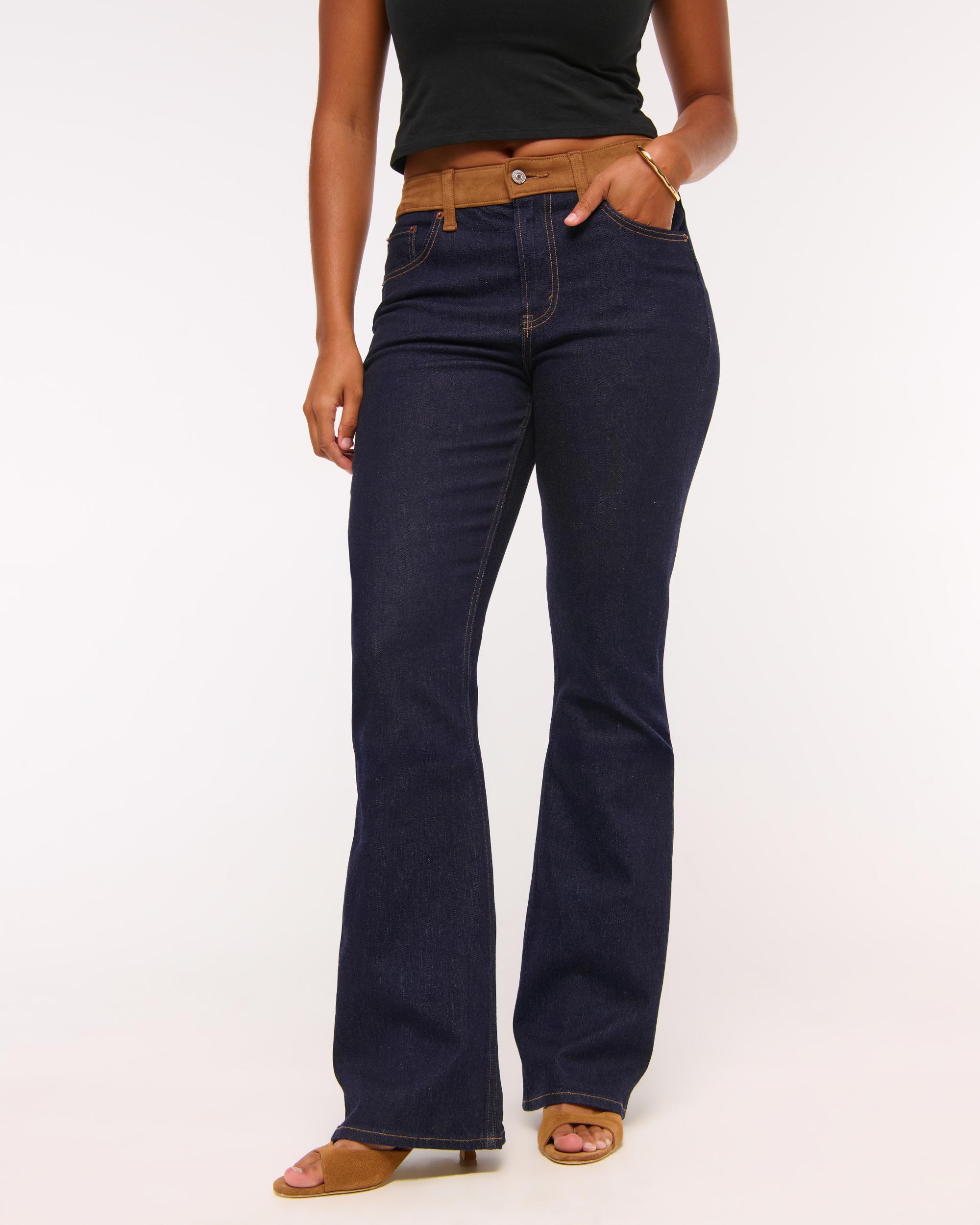 Our Curve Love bootcut fit in a rinsed wash, with vegan suede mixing and a clean hem. Features a mid rise that is slim through the hip, seat and thigh to show off your best butt. Slightly flares at the calf into a full-length, bootcut leg shape. The viral fit that eliminates waist gap: Curve Love features additional room through the hip and thigh for curve-hugging comfort. Made from our Signature Stretch fabric with superior comfort and stretch. This jean was designed to fit over a boot and hits at a full length over any shoe.