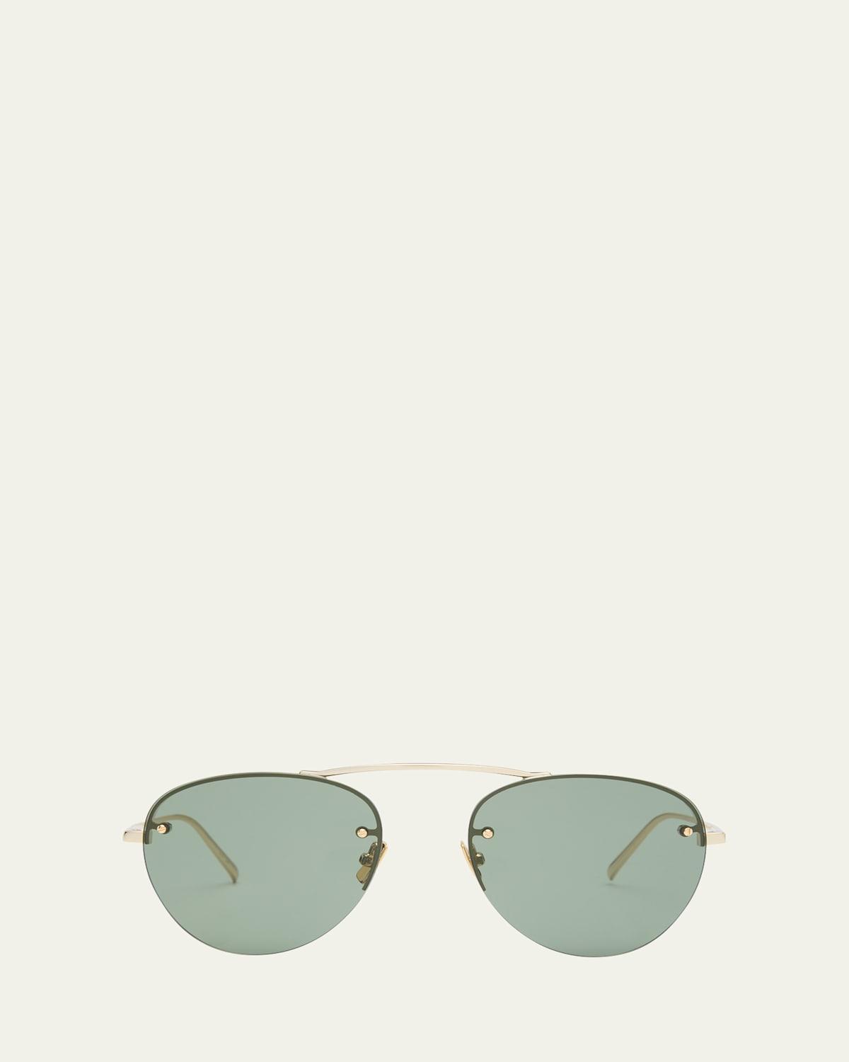 From the Metal High-Bridge Collection. Screw-top pin hardware lends a utilitarian feel to Saint Laurents aviator sunglasses, designed with an engraved logo at the temple. 100% UV protection Solid lenses Case and cleaning cloth included Metal/bio nylon Made in Italy SIZE 55mm lens width 19mm bridge width 145mm temple length ABOUT THE BRAND Founded in 1961, Yves Saint Laurents groundbreaking styles have become iconic cultural and artistic references, and its founder, the couturier Yves Saint Laurent, secured a reputation as one of the twentieth centurys foremost designers. Part of the Kering Group, the House kept true to its identity of absolute modernity and fashion authority. Under the creative direction of Anthony Vaccarello, appointed in April 2016, the House offers a broad range of womens and mens ready-to-wear products, leather goods, shoes, jewelry and eyewear. It is also a major force in fragrances and cosmetics. Soft Accessories - Sunglasses > Saint Laurent > Saks Fifth Avenue > Barneys. Saint Laurent. Color: Gold.