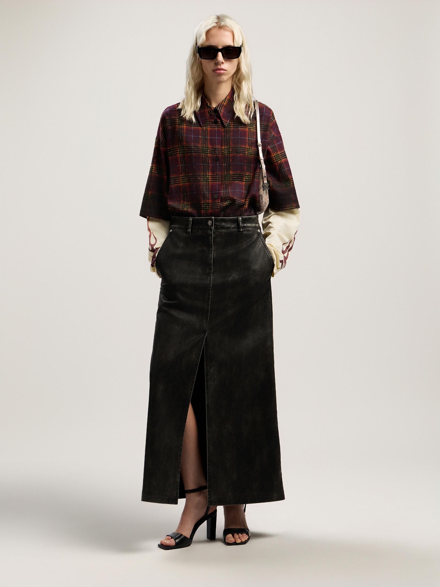 Curved Logo Coated Long Skirt