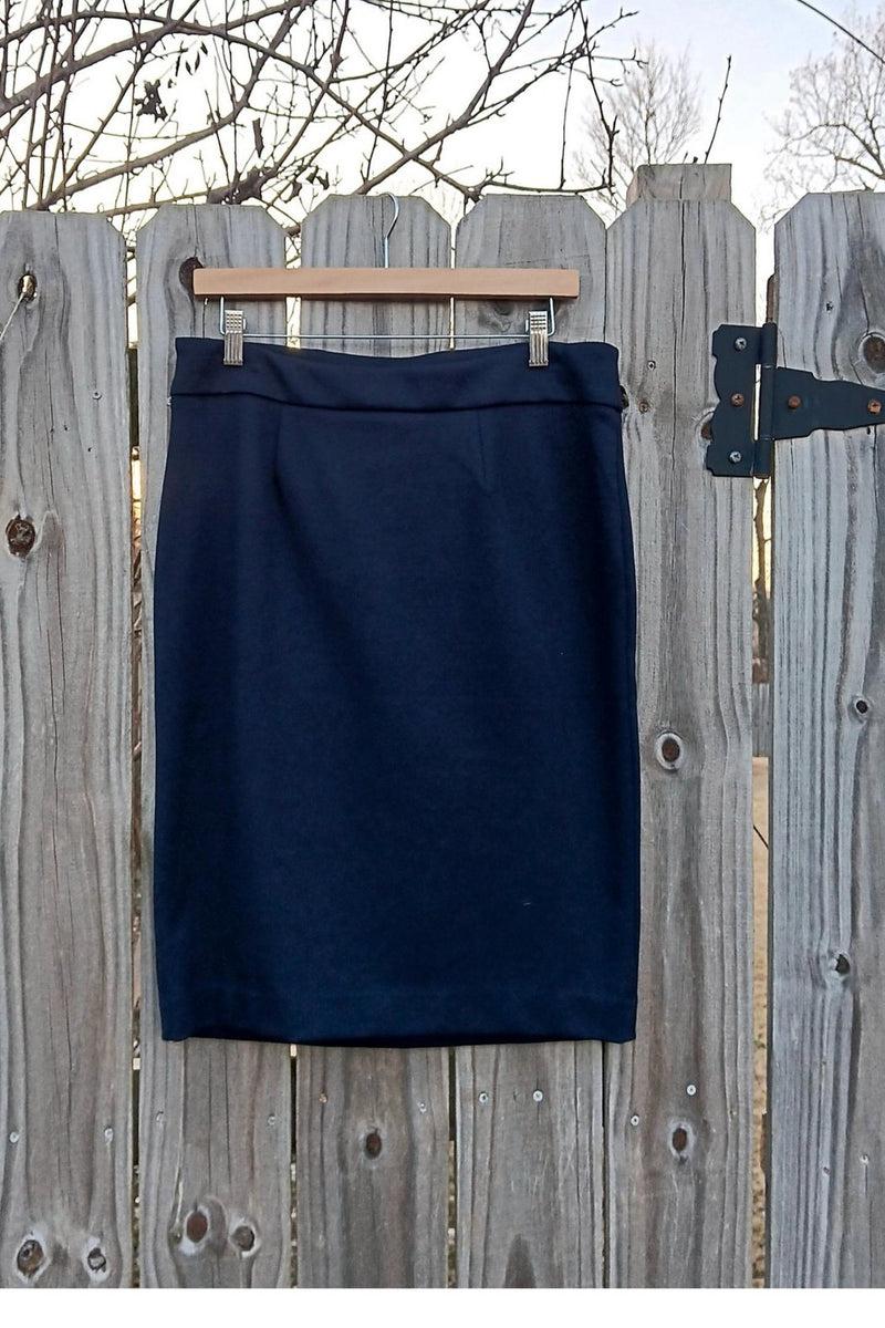 This skirt stretches and is made from thicker fabric. The thicker fabric will help hide the inner garments underneath, especially since this is a bodycon piece. The skirt is meant to make a statement. The waist of the skirt doesn't stretch much and is 34". The hips stretch between 42" and 54" and the skirt is 26" long from the waist to the bottom hem. This skirt can be paired with a button-down blouse, boots, flats and heels. It would even look good with sneakers. Decide, once you make it yours. This skirt is a 1X is deep navy blue in color. There is a secret zip on the side of the skirt (top portion, closer to the waist) that makes the skirt easy to wear. The zip is 7 1/2" long. The waist area is 3" wide (long) at the widest point and will cover your belly area well to create that fitted look. Text us or WhatsApp on 7656060777 if you have additional questions.