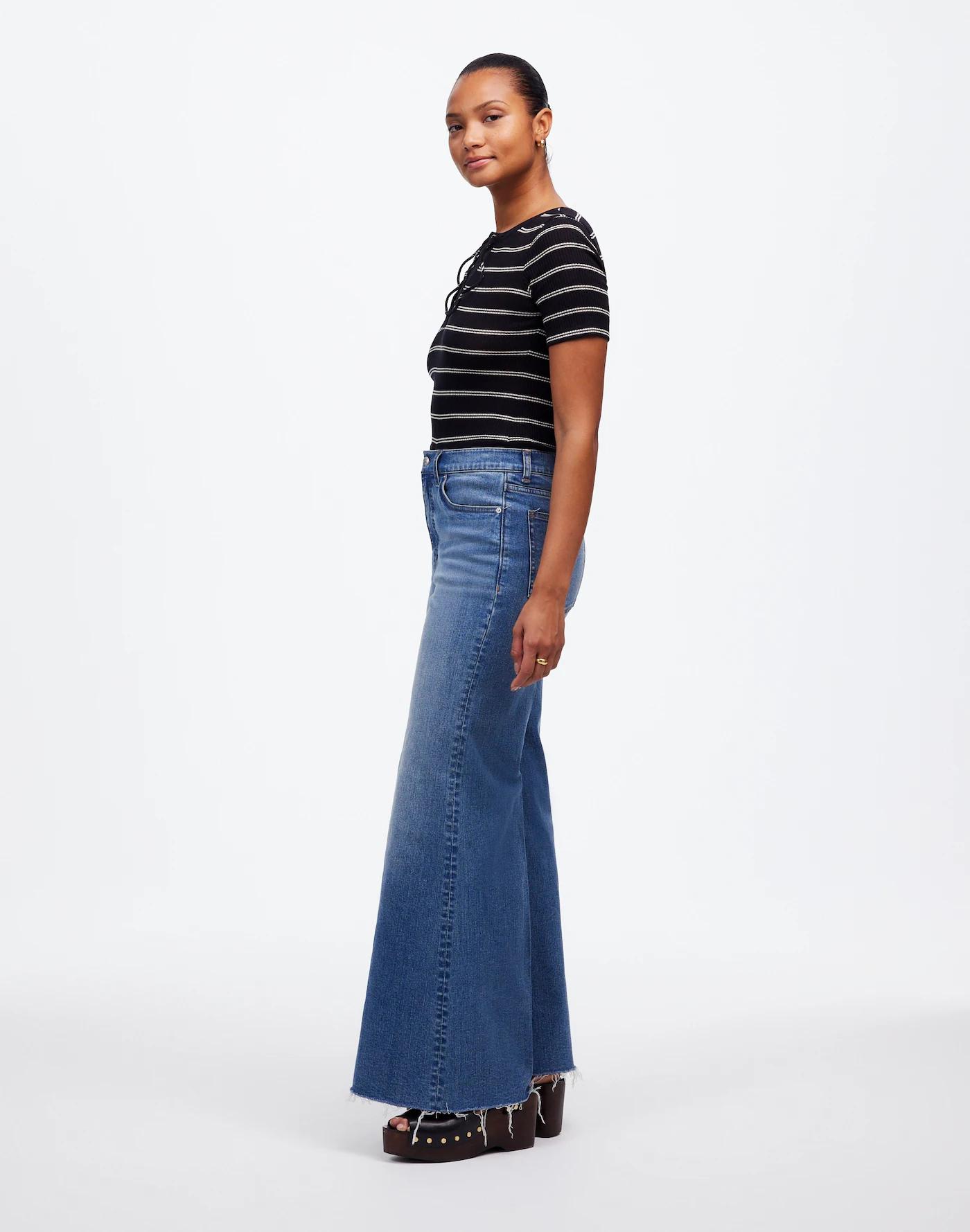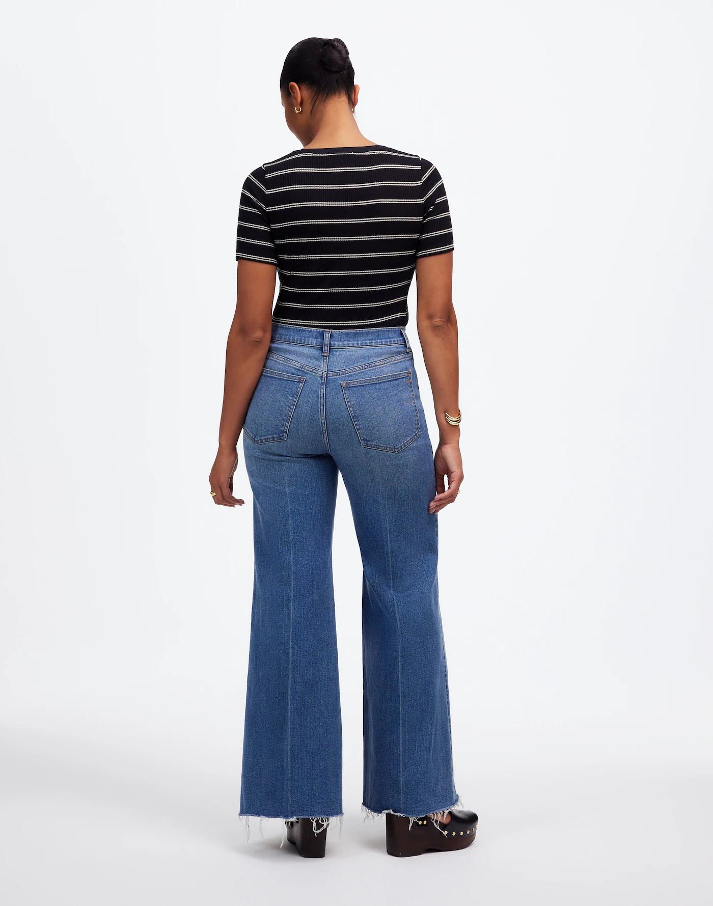 The cut: designed for an hourglass shape (see: narrower waist with a contoured band, a longer rise and a little extra room at the hips and thighs), these cropped Perfect Vintage jeans have wide legs and the holds-you-in sorcery of our Magic Pockets™ in front. Featuring crisp front creases and raw-edge hems.