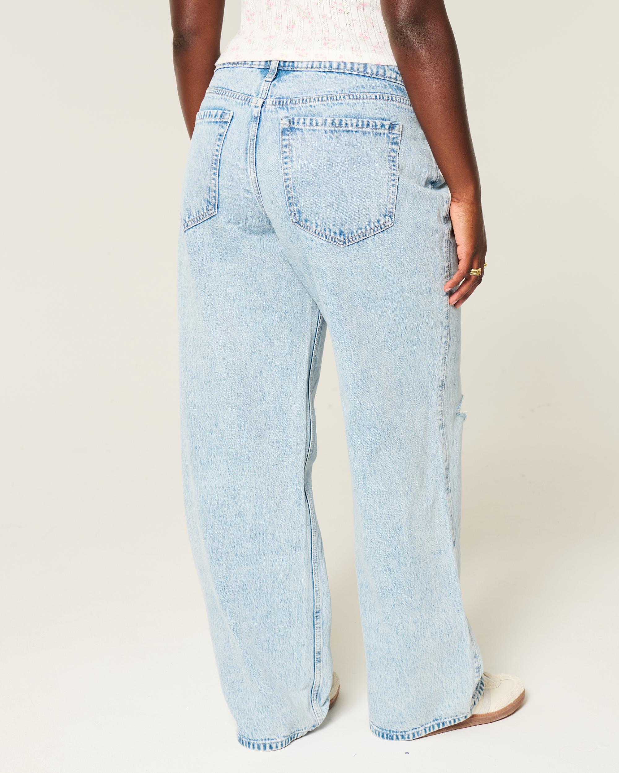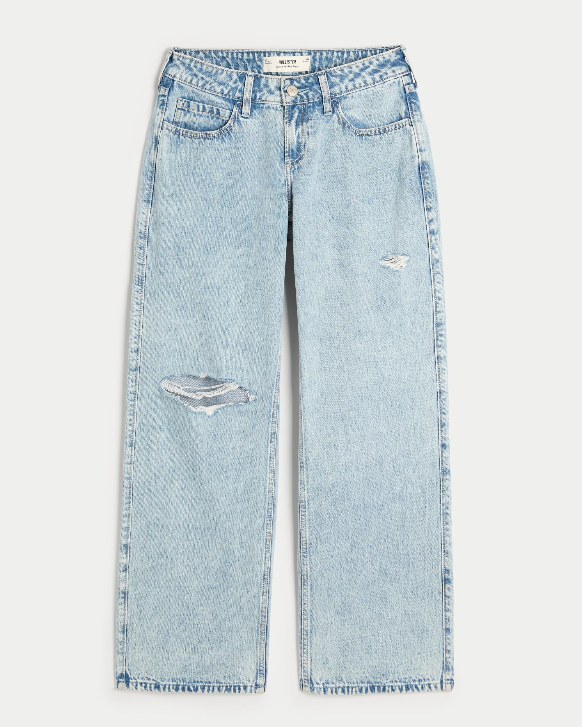 Made for anyone who’s ever had to compromise the way their jeans fit by wearing jeans that are the right size through the hip and thigh, but too big at the waist.Our curvy fit eliminates waist-gapping with a proportionately slimmer look-good magic waistband and a roomier feel-good fit through the hip and thigh. If you measure 12-14” larger around your hips than you do around your natural waist (aka an hourglass figure), you’re never going to want to wear anything else.Comfortable denim jeans in a light wash, designed with a flattering low-rise waist and baggy leg. Ripped details.
