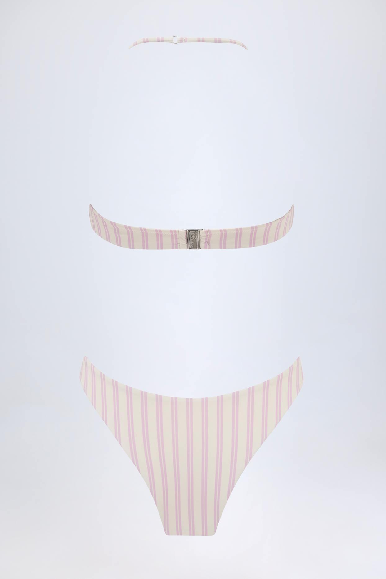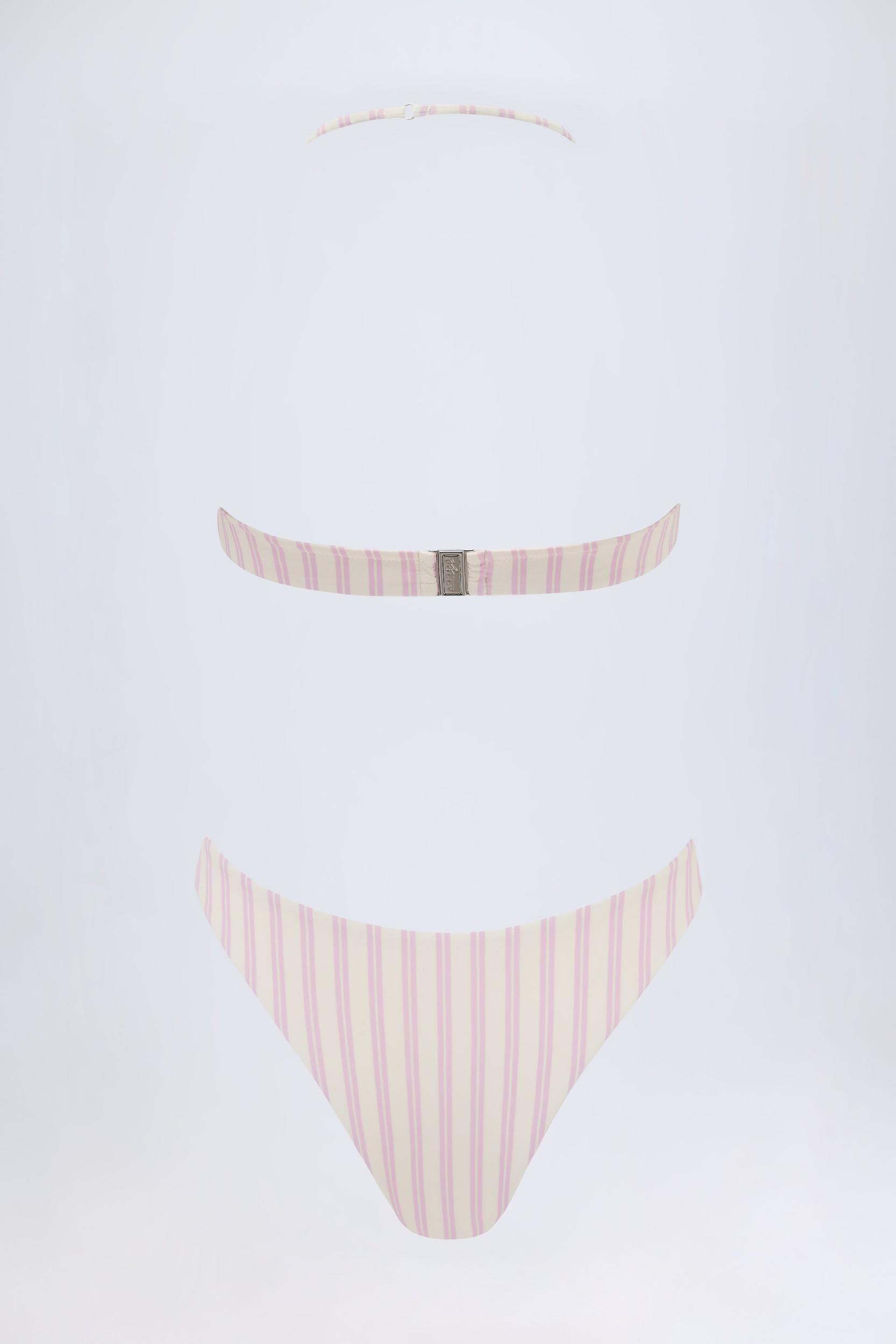 A contemporary take on classic elegance, the Biarritz swimsuit is crafted from recycled stretch-swim jersey to a high-cut silhouette inspired by retro-inspired styles. Framed with a bust-flattering ruched bandeau neckline and detachable halterneck straps for extra support, it’s punctuated with a curved side and back cut-out for a glamorous look. Bandeau neckDetachable, adjustable halterneck strapStripe print Ruched detailingCut-out detailing at side and backCheeky back coverageHigh-cut legPull-on designClasp fastening at backStandard swimsuit length, centre front approx. 50cm based on a size SProduct code: NS1015