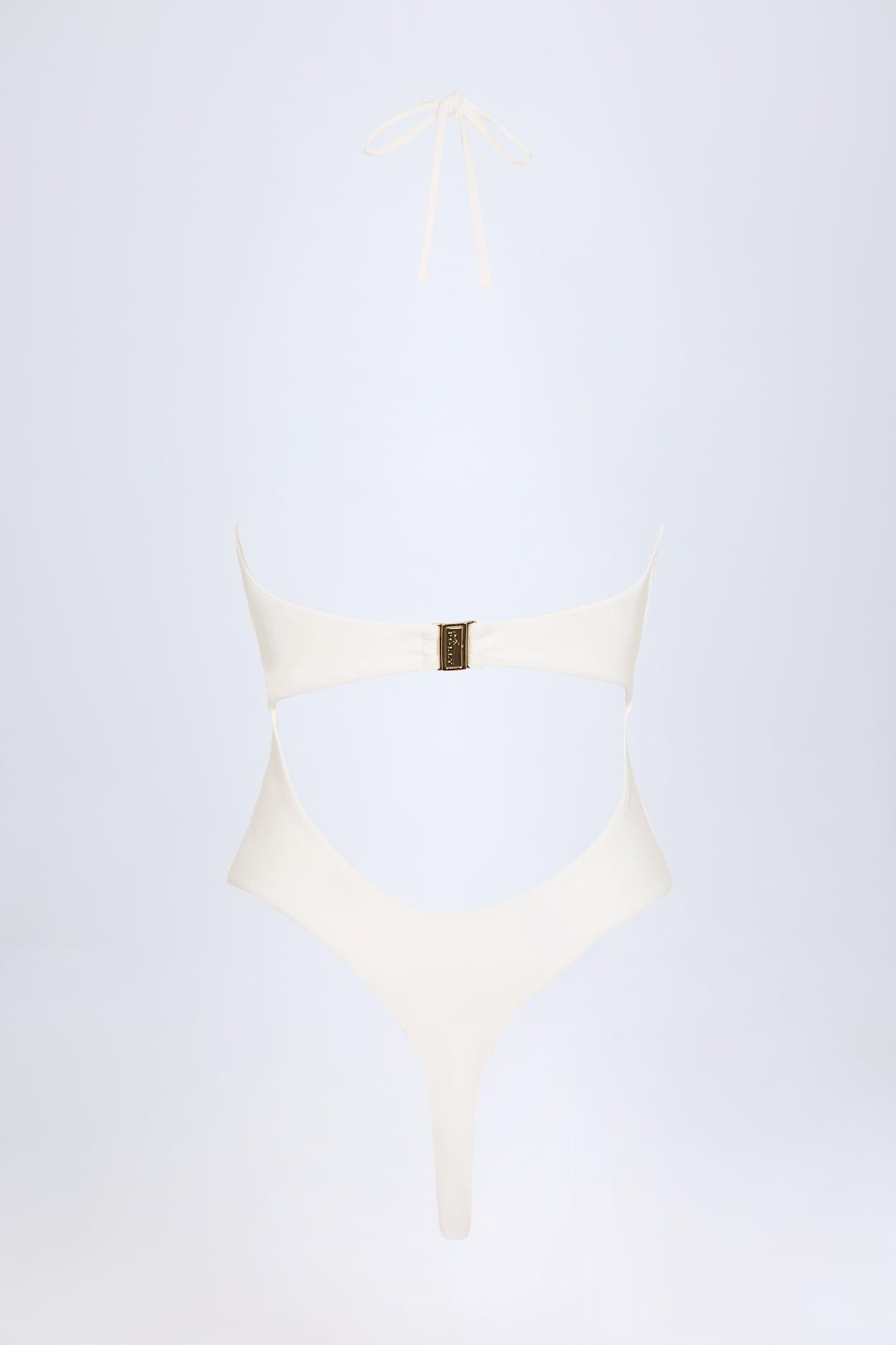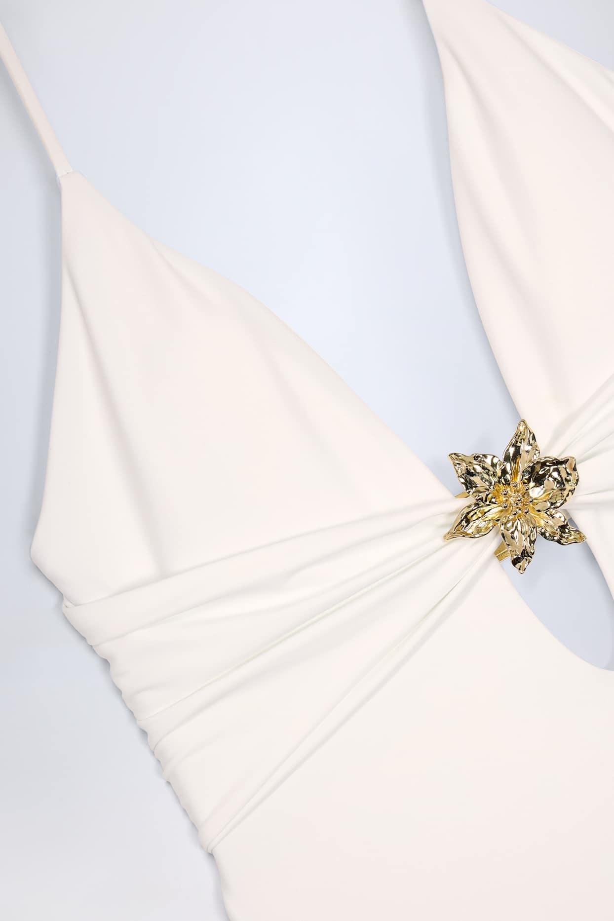 Inspired by tropical landscapes, the Bahari swimsuit is detailed with custom flower-shaped hardware at the centre. Crafted from our premium stretch-jersey swim fabric that fits like a second skin, it’s cut to a figure-flattering high-leg silhouette with a statement cut-out and cheeky back coverage. The halterneck straps are fully adjustable for a custom fit every time. Plunge V-neckAdjustable halterneck strapsFlower-shaped hardware Gathered detailing at front Cut-out detailing at backClasp fastening at backCheeky back coverage High-cut leg Standard swimsuit length, front approx. 33.5cm based on a size SFor hygiene reasons, swimwear can only be returned if the hygiene sticker remains intact and in its original position.Product code: NS10511C