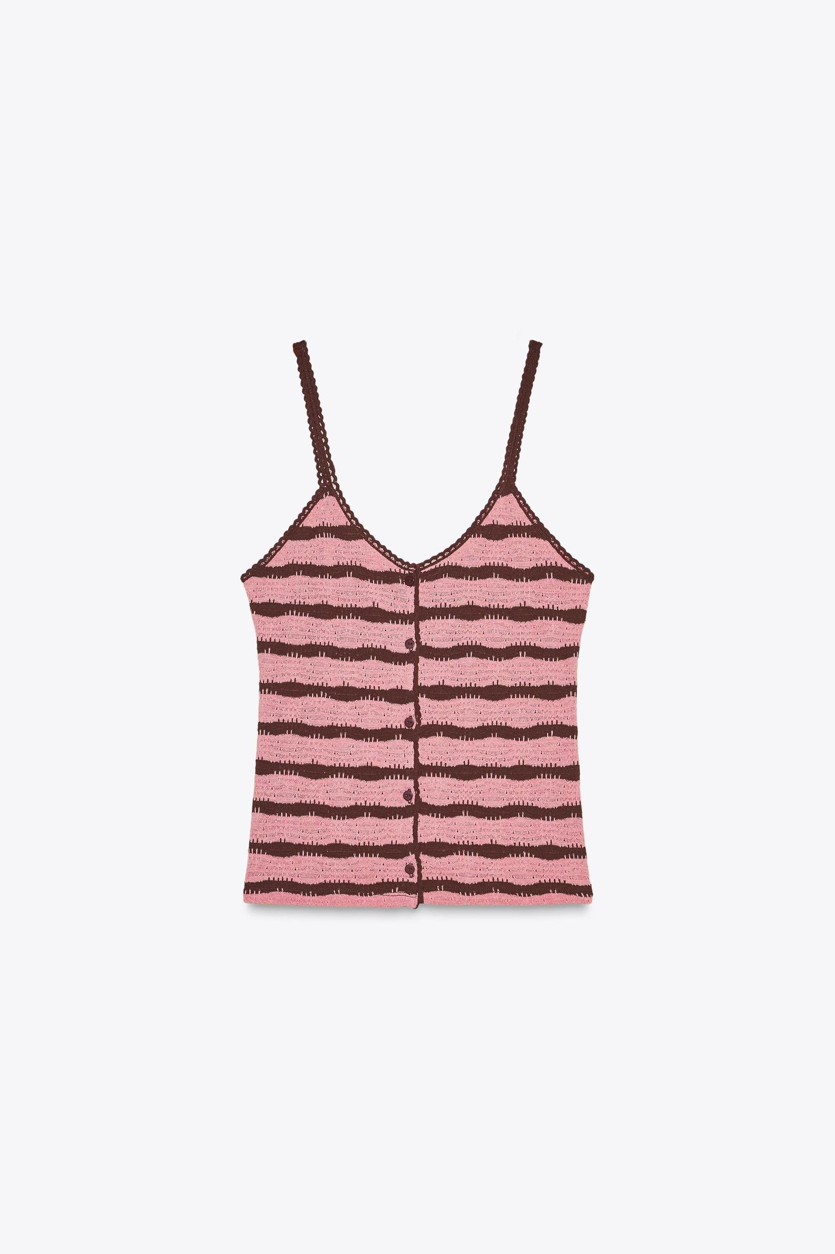 CUT-OUT KNIT STRIPED STRAPPY TOP