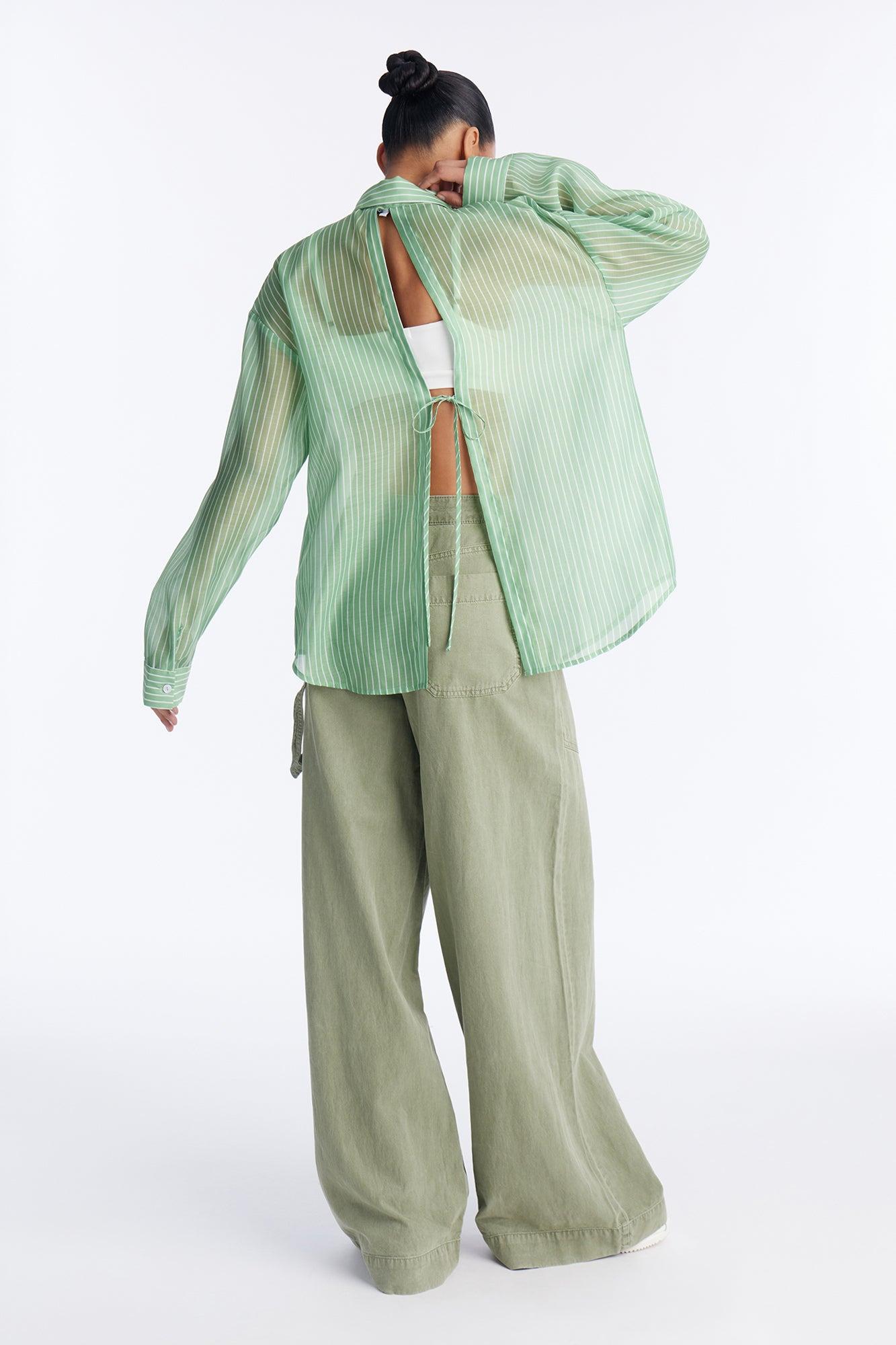 Cute Chaos Pinstripe Sheer Shirt - Green Female