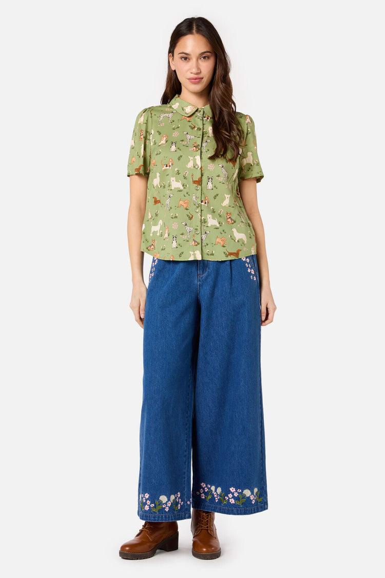 Spread joy (and puppy love) in the Cute Dogs Blouse by Princess Highway. Featuring an all-over print of the most adorable pups in town, this charming short sleeve blouse is perfect for dog lovers and anyone chasing good vibes. With a semi-fitted silhouette and a sweet pointed collar, it's an easy-to-wear piece that adds personality to any outfit.All-over cute dog printShort sleevesButton-through frontSmall pointed collarSemi-fitted through the bodyMade from a soft cotton-viscose blendAvailable in creamFabric & Care55% Cotton, 45% ViscoseCold delicate machine washWash garment inside out with like coloursDo not wring or spinDo not bleach or soakDo not tumble dryLine dry in shadeCool iron on reverse if requiredDo not dry clean