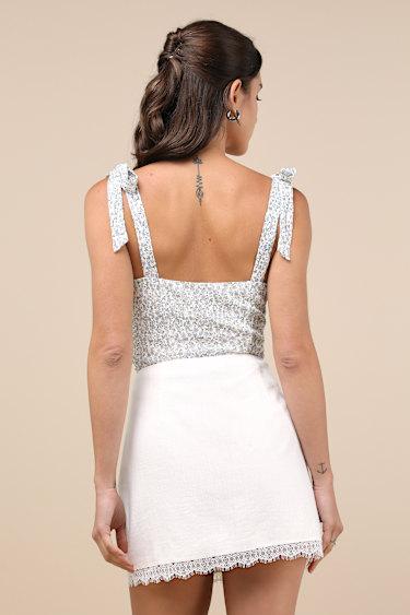 An instant outfit starts with your favorite flirty top and the Lulus Cute on Cue Cream Linen Lace-Trimmed Mini Skirt! Lightweight stretch-woven linen-blend fabric creates an adorable A-line silhouette, complete with a fitted waist, tailored darting, and a lightly flared mini hem, trimmed with romantic eyelash lace. Hidden side zipper/clasp.