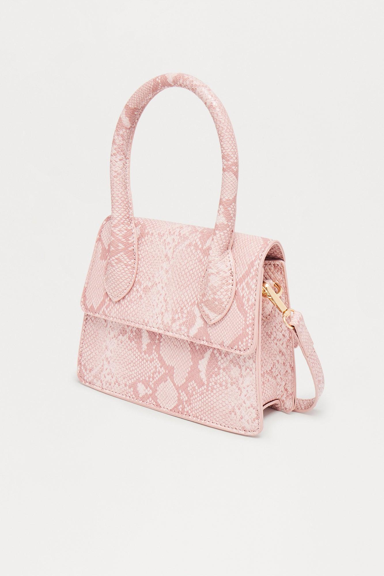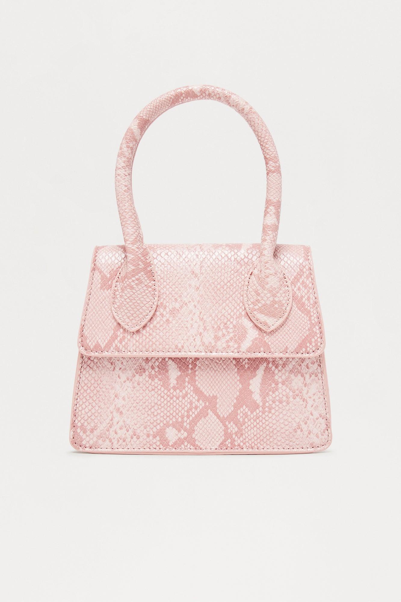 Available In Pink. Satchel Bag Faux Leather Material Embossed Snake Material Dimensions: 8"3"6.5 Imported California Proposition 65WARNING: Cancer and Reproductive Harm - www.P65Warnings.ca.gov.