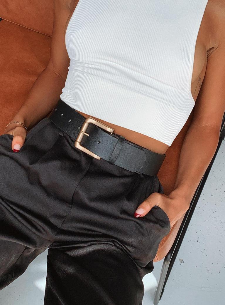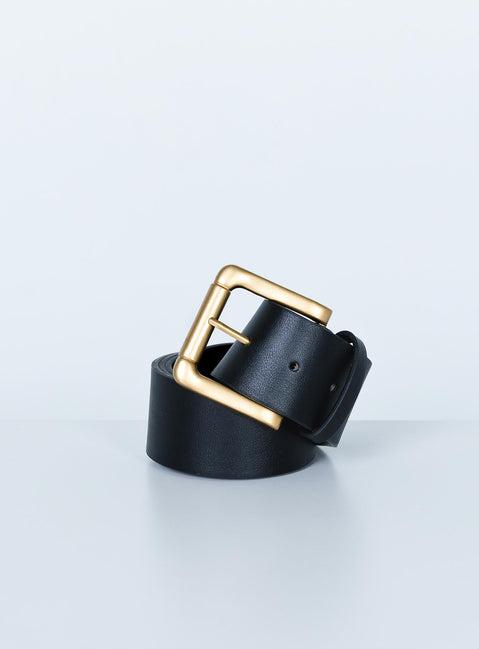 Waist belt Vegan leather Wide band Bold buckle Gold toned hardware Length of size S/M adjusts from: 86cm - 101cm / 33.8” - 39.7” Length of size L/XL adjusts from: 73cm - 88cm / 28.7" - 34.6"