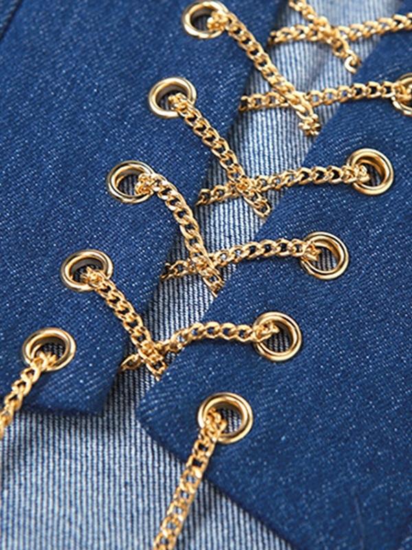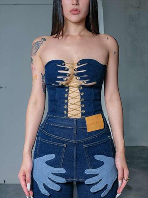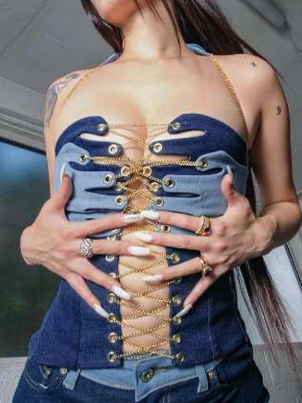 Cutout Crossover Chain Tie Up Bandeau Top