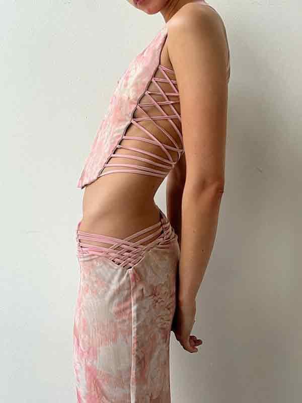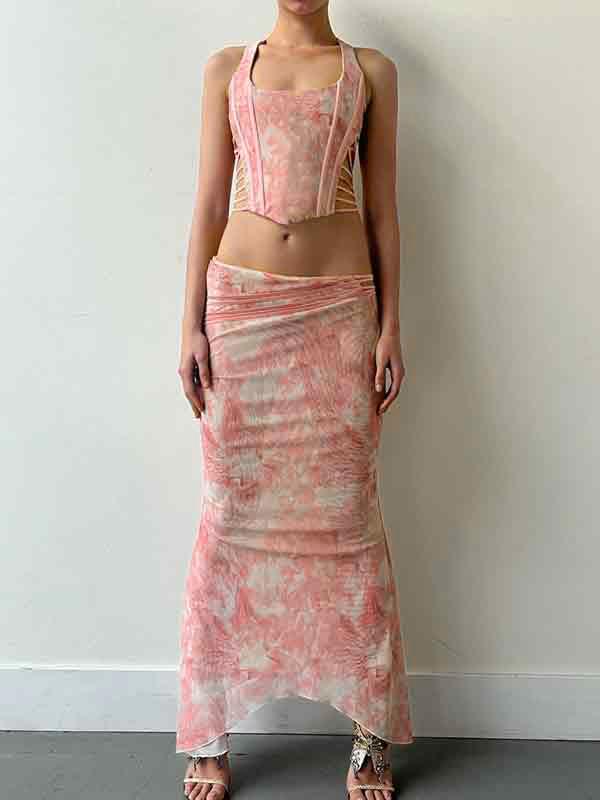 Cutout Irregular Print Slim Two Piece
