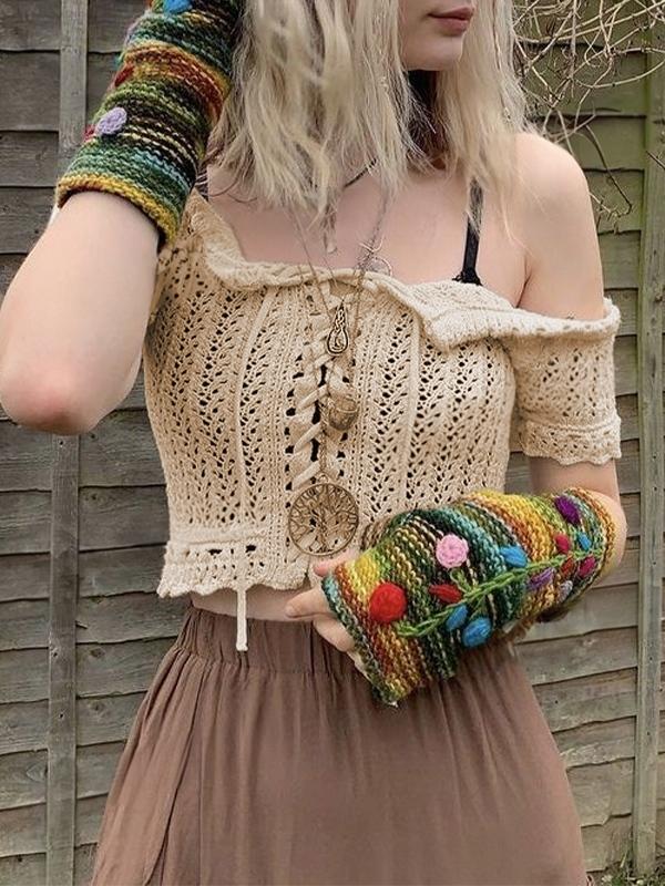 Cutout Off Shoulder Tie Front Short Sleeve Knit