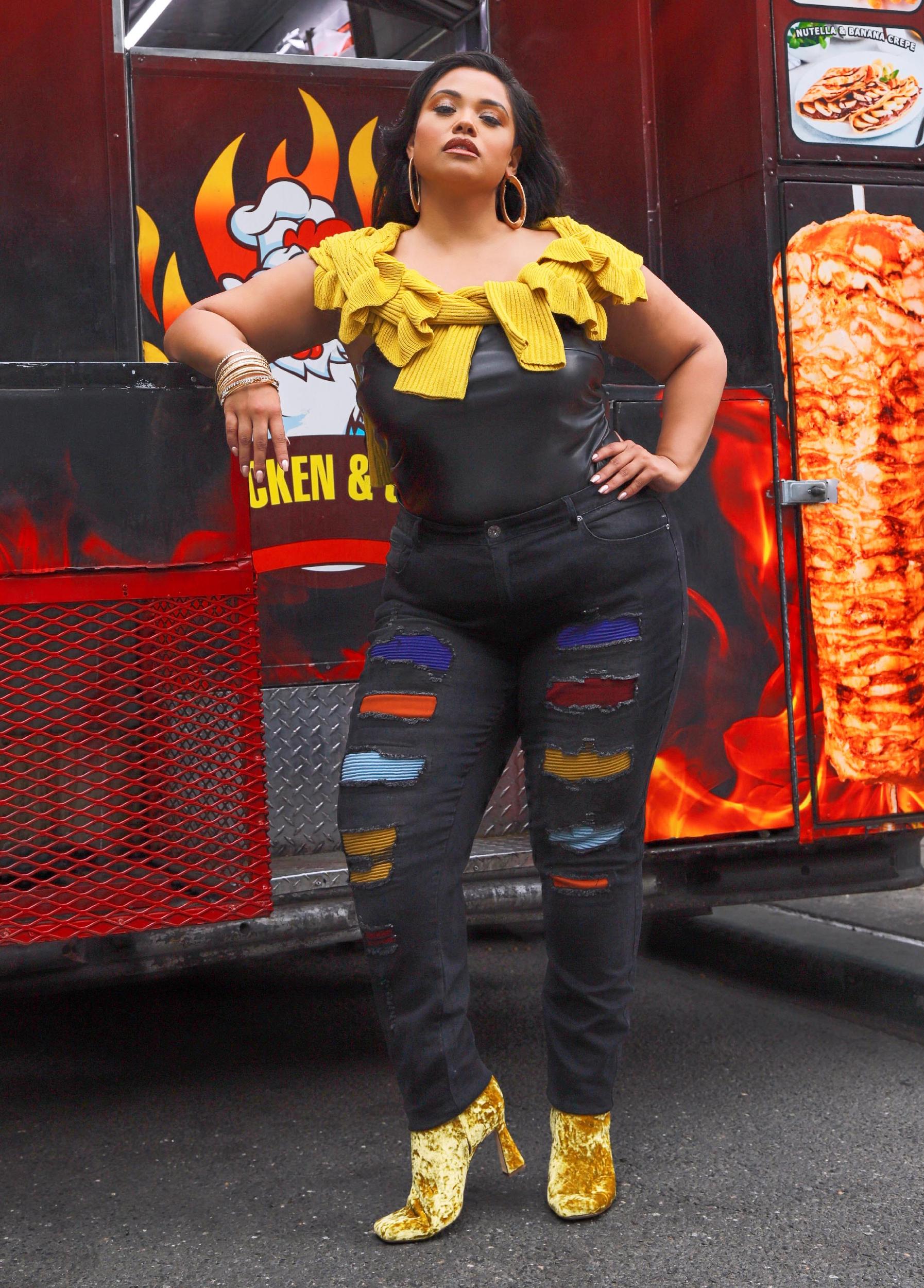 Cutout Ribbed Skinny Jeans
