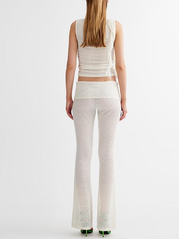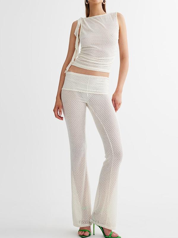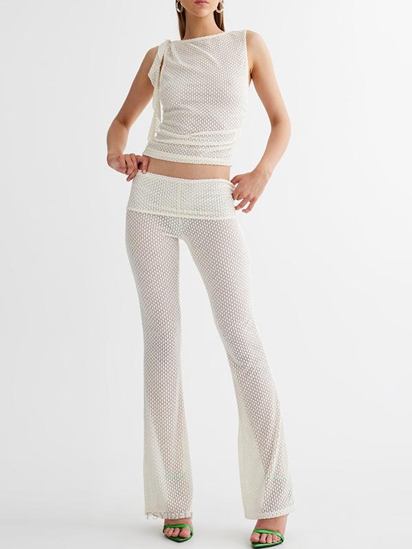 Cutout Sleeveless Vest & High Rise Flare Leg Pants Set