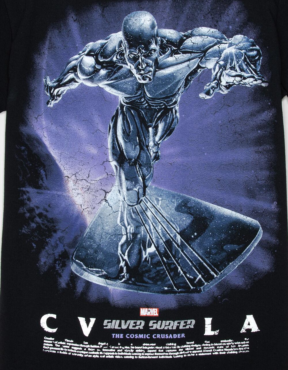 CVLA x Marvel Villains Silver Surfer Tee. Large graphic screened on front. Crew neck. Short sleeve. 100% Cotton. Machine wash. Imported.