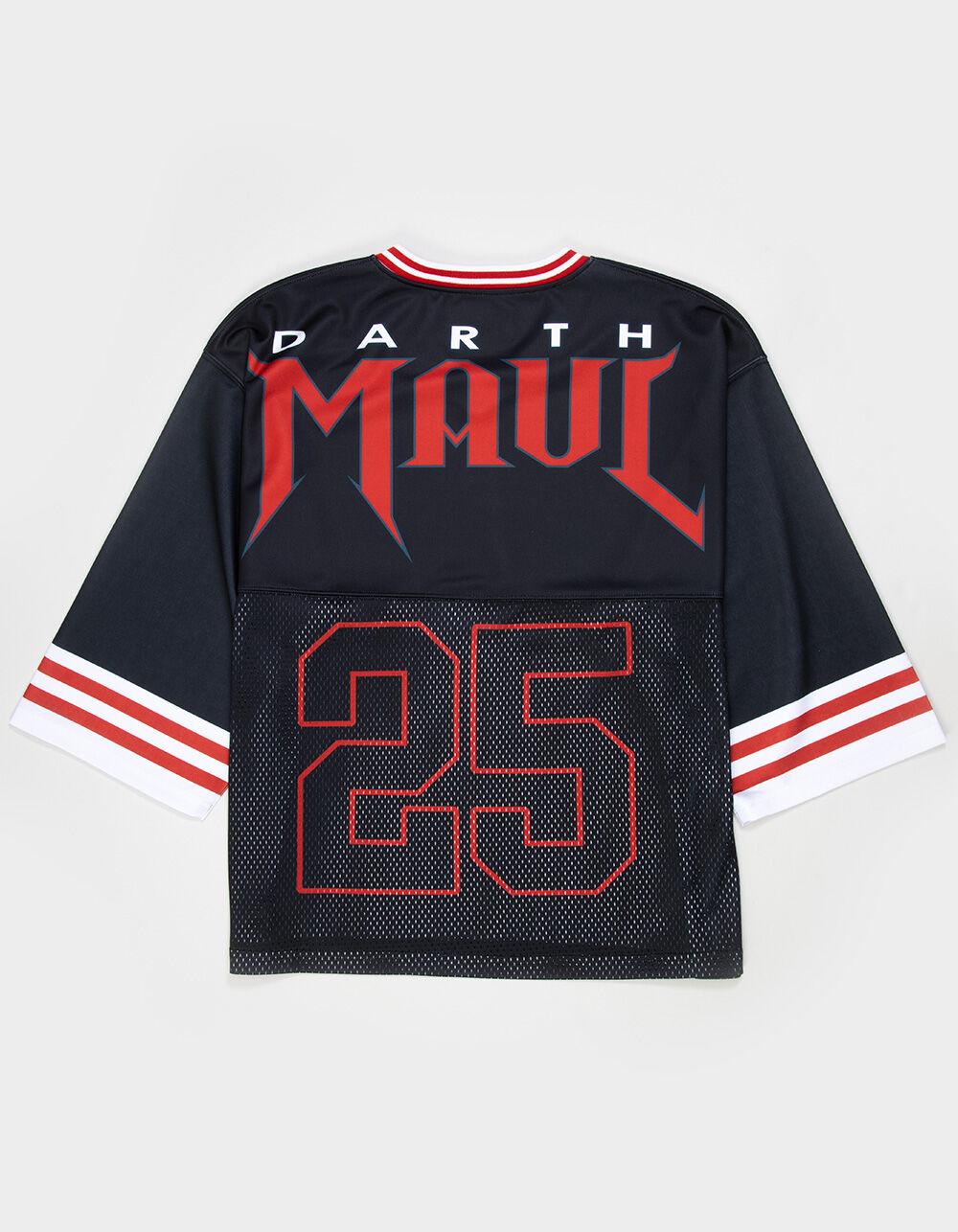 CVLA x Star Wars Darth Maul Jersey. This football-style jersey features a pieced construction with a mesh lower half. Star Wars and CVLA graphics at upper chest. number 25 screened at lower mesh front and back. Darth Maul screened at upper back. Stripe details at neckline and sleeve cuffs. Oversized sleeves. 100% Polyester. Machine wash. Imported.