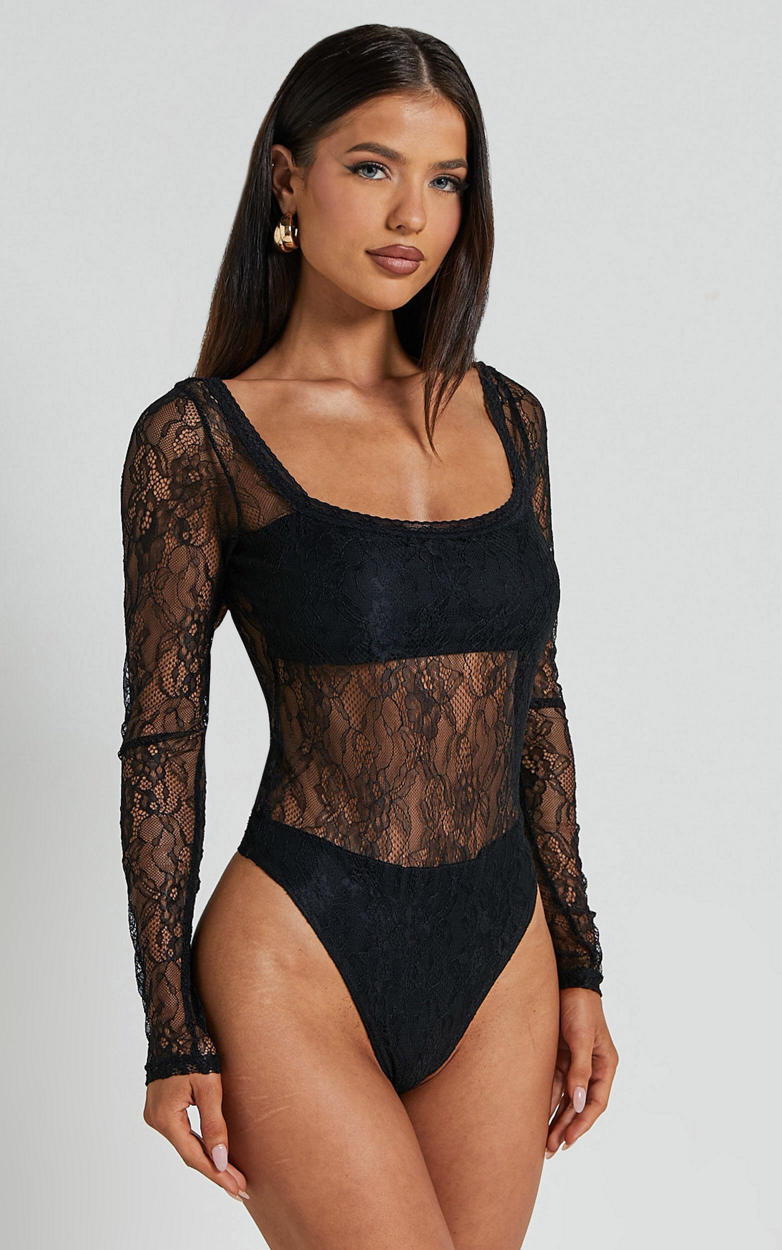 This stunning black lace bodysuit brings major runway appeal, designed to turn heads wherever you go. Featuring sheer lace-detailed sleeves and a flattering fitted silhouette, it's perfect matched with high-waisted leather trousers or tailored mini skirts for an effortlessly chic street-style look.Whether you're enjoying cocktail evenings or nights out with friends, the Cynthia Bodysuit instantly adds glamour to your favorite outfits. Pair it with statement accessories like gold hoop earrings and strappy stilettos, and you'll find yourself reaching for this wardrobe favorite again and again.Product Details:Lace BodysuitSquare NecklineLong SleeveStandard LengthPolyester Material