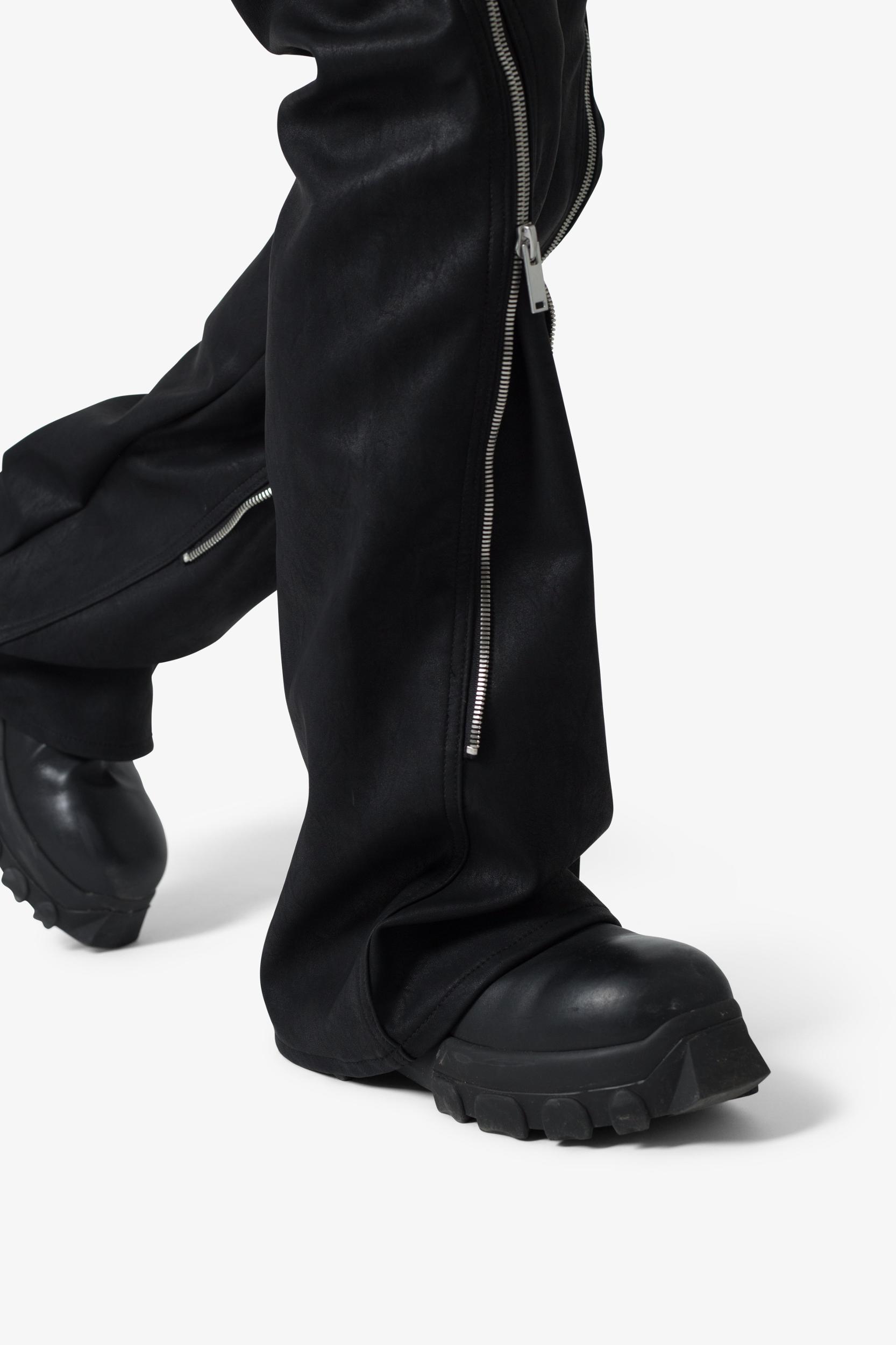 the D519 Leather Zipper Flare Denim is designed with our D fit which is straight throughout, zipper detail extending from the thigh to the shin to provide a flare fit through the leg, and is constructed from a black vegan leather. details relaxed fit throughout 100% polyester model is 6’1, 140 lbs and wears a size 30
