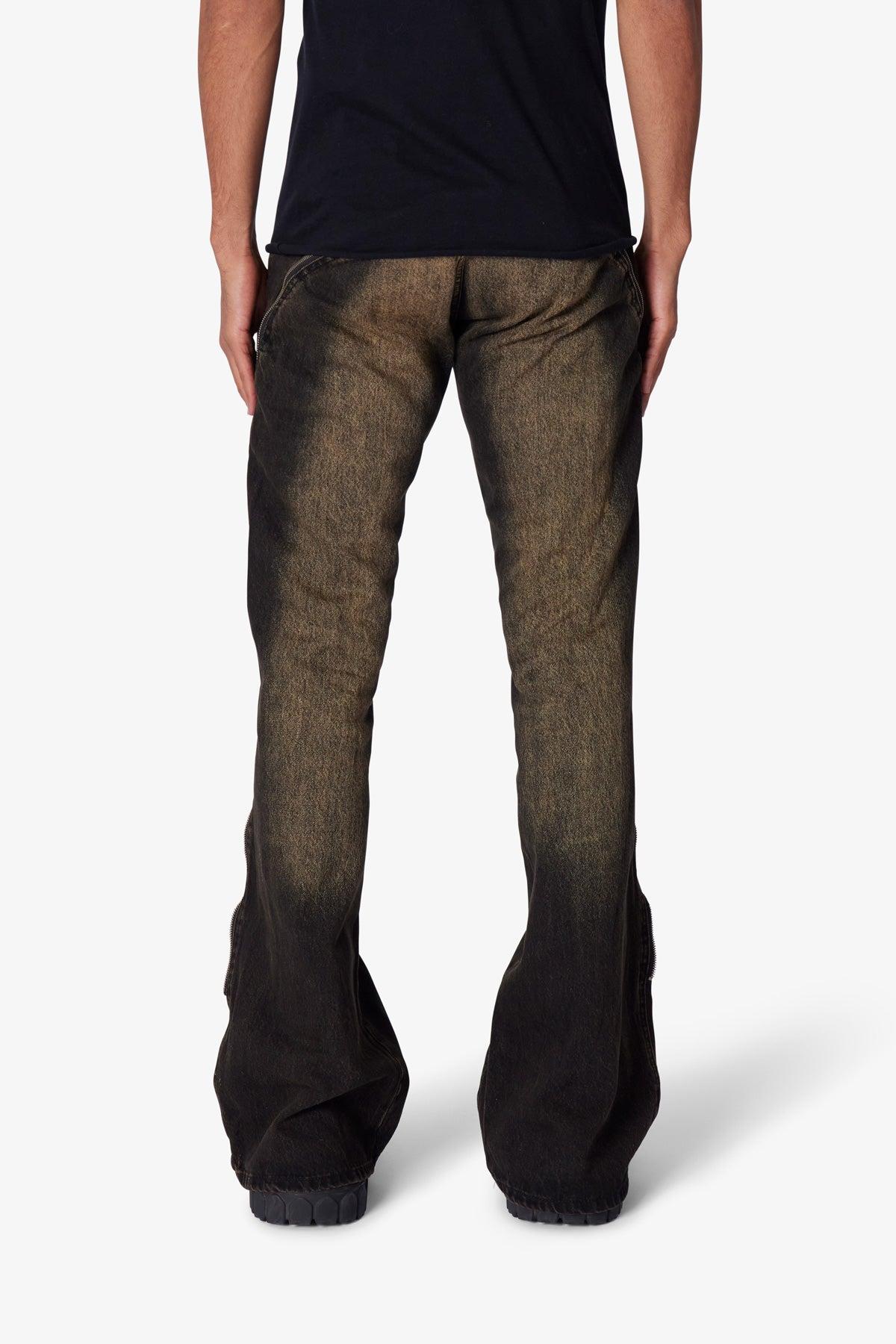 the D519 Zipper Flare Denim is designed with our D fit which is straight throughout, zipper detail extending from the thigh to the shin to provide a flare fit through the leg, and is constructed from vintage washed black denim. details relaxed fit throughout 100% cotton model is 6’1, 140 lbs and wears a size 30