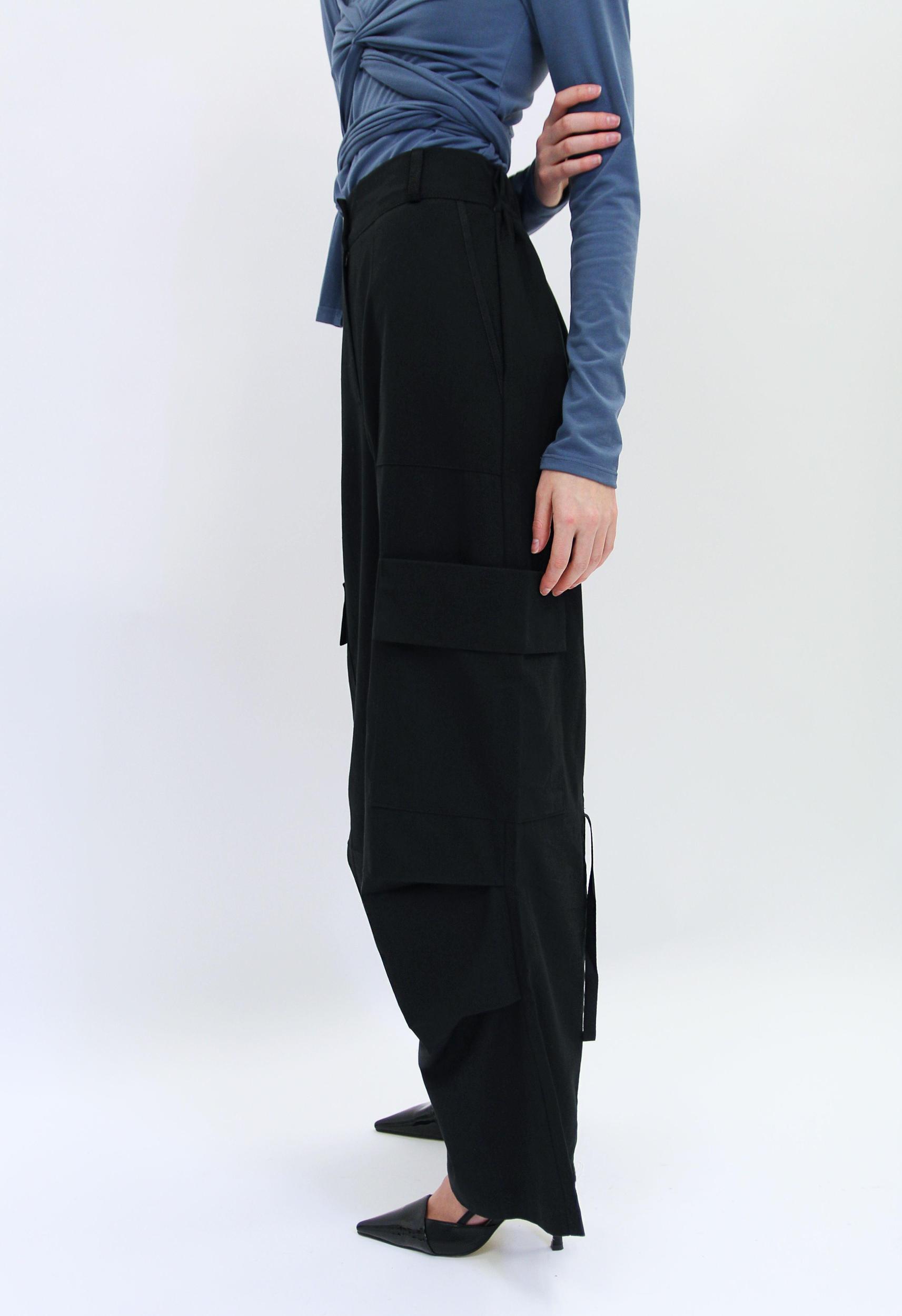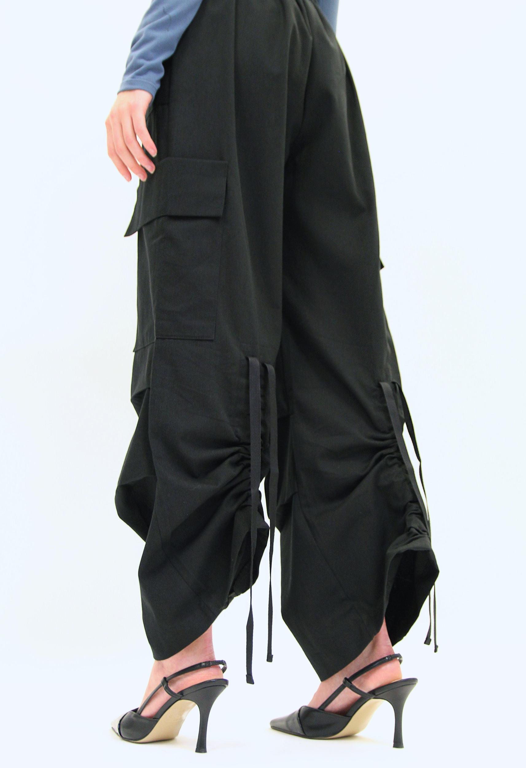 One Size. Fits XS-MColor: BlackPocketsCargo PocketsDarting at HemCinched on the Back100% NylonDry CleanBy The NKC Store