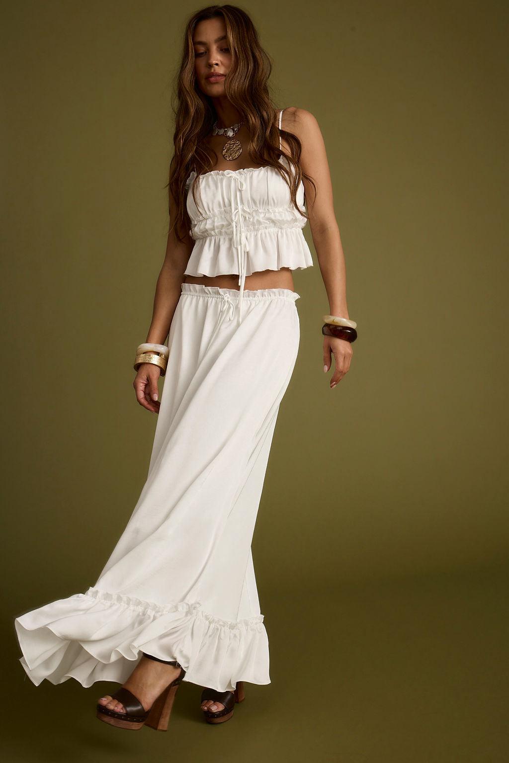 Based on the best selling Dahlia Baby Yellow Set, we’ve created a brand new bridal and occasion ready version in white. With the same free flowing silhouette you love, now in luxe white satin, the Dahlia White Satin Set is a must-have in every wardrobe. With feminine ruffle details and an elastic faux drawstring waist, we designed this skirt to pair perfectly with the Dahlia White Satin Tank for a coordinated look like no other.