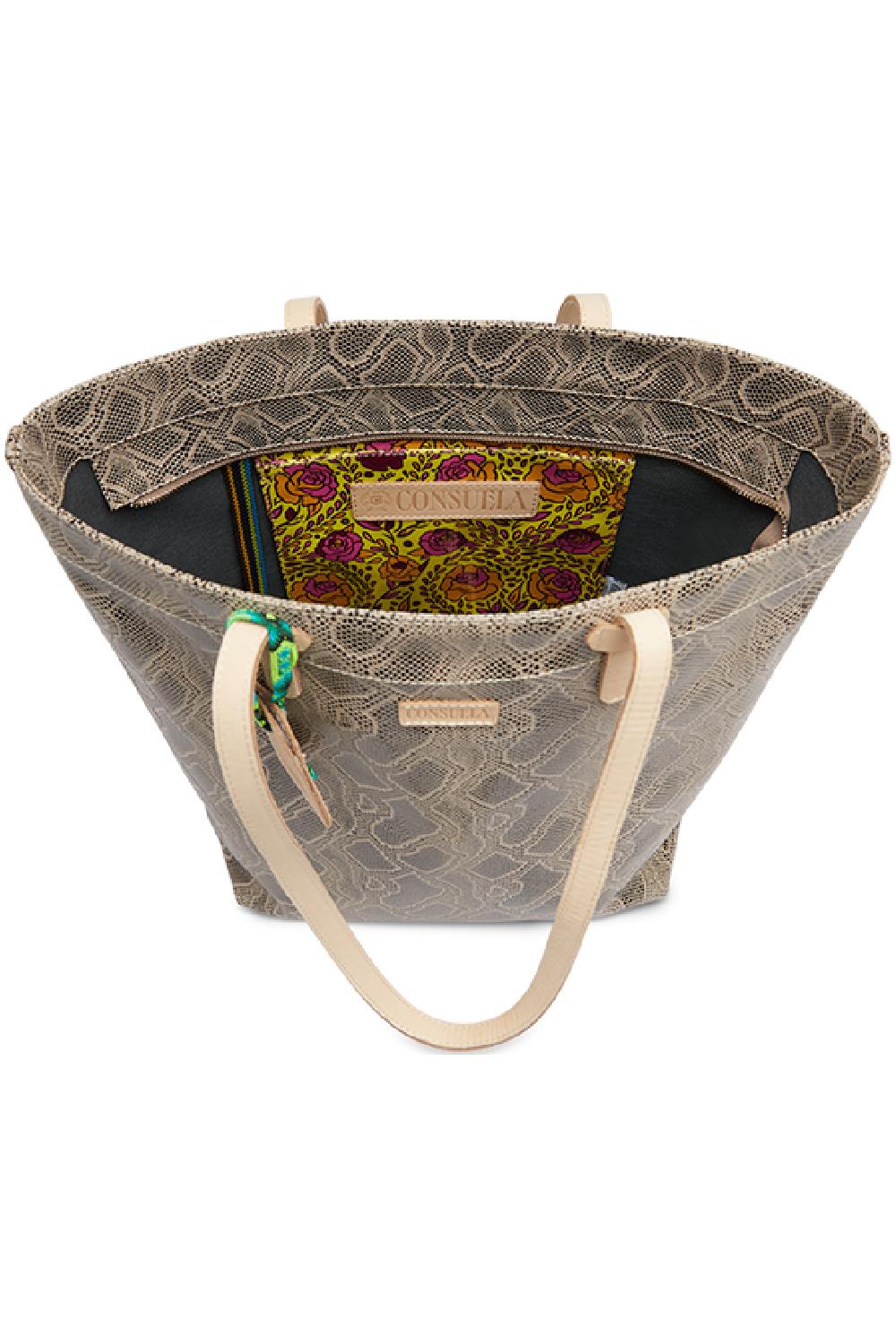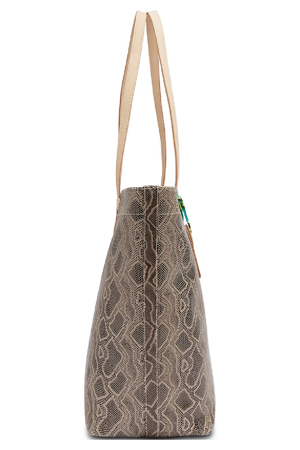 Dizzy snake embossed leather exterior