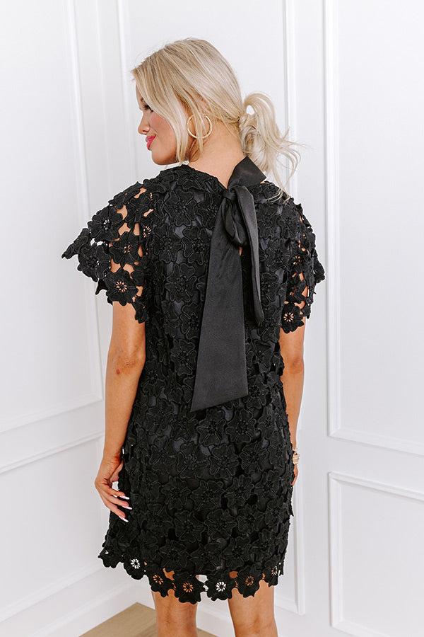 - Radiate with whimsical elegance in this floral crochet mini dress! With delicate crochet blooms it exudes romantic charm perfect for any occasion. An adorable bow detail on the back, it adds a touch of sweetness. Effortlessly chic and feminine, this dress captures a romantic vibe that is simply irresistible. - Floral crochet material - A built-in lining - A round neckline with a back tie and keyhole detail - Short unlined sleeves - A relaxed silhouette that ends in an uneven crochet hemline