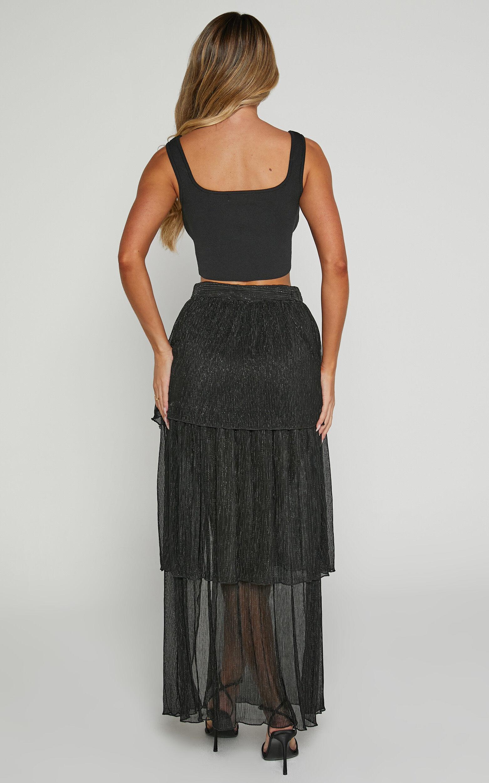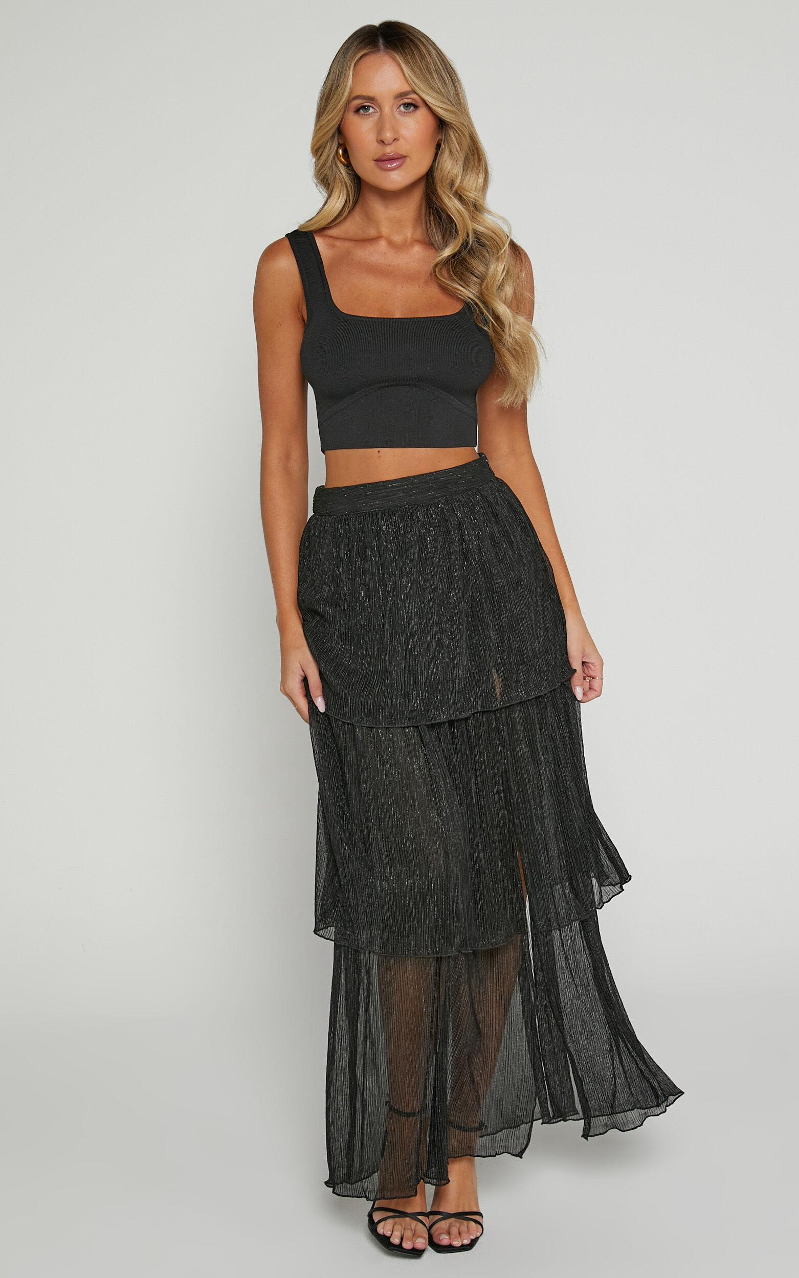 Get ready to turn heads in the Daisy Maxi Skirt! This black beauty is perfect for both party nights and casual days out. The high-waisted style cinches your waist, while the thigh split adds a touch of flirtiness. Made from polyester, this A-line skirt is lightweight and comfortable, making it a must-have addition to your skirt collection. Whether you're going for an edgy look or something more elegant, the Daisy Maxi Skirt has got you covered (literally!). So go ahead and show off those legs with confidence!Product Details:A Line SkirtMaxi lengthParty wearMade of PolyesterSize and FitSize S / 8 length: 101.5cm / 39.96inMaterial and CareMain Fabric: 100% PolyesterLow / No stretch