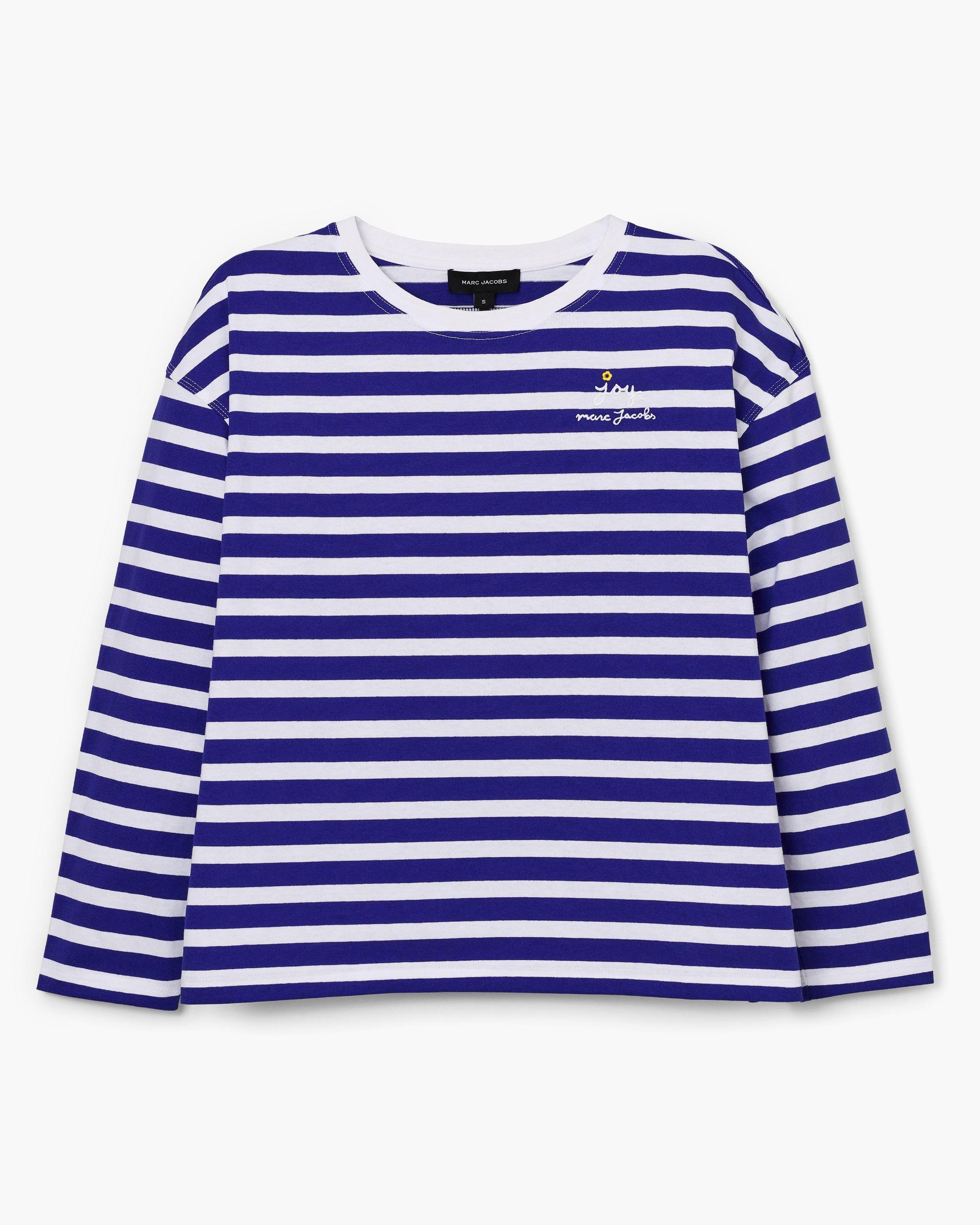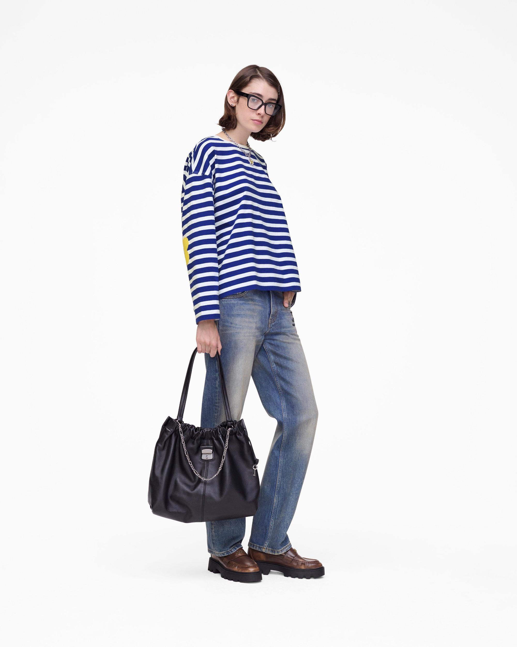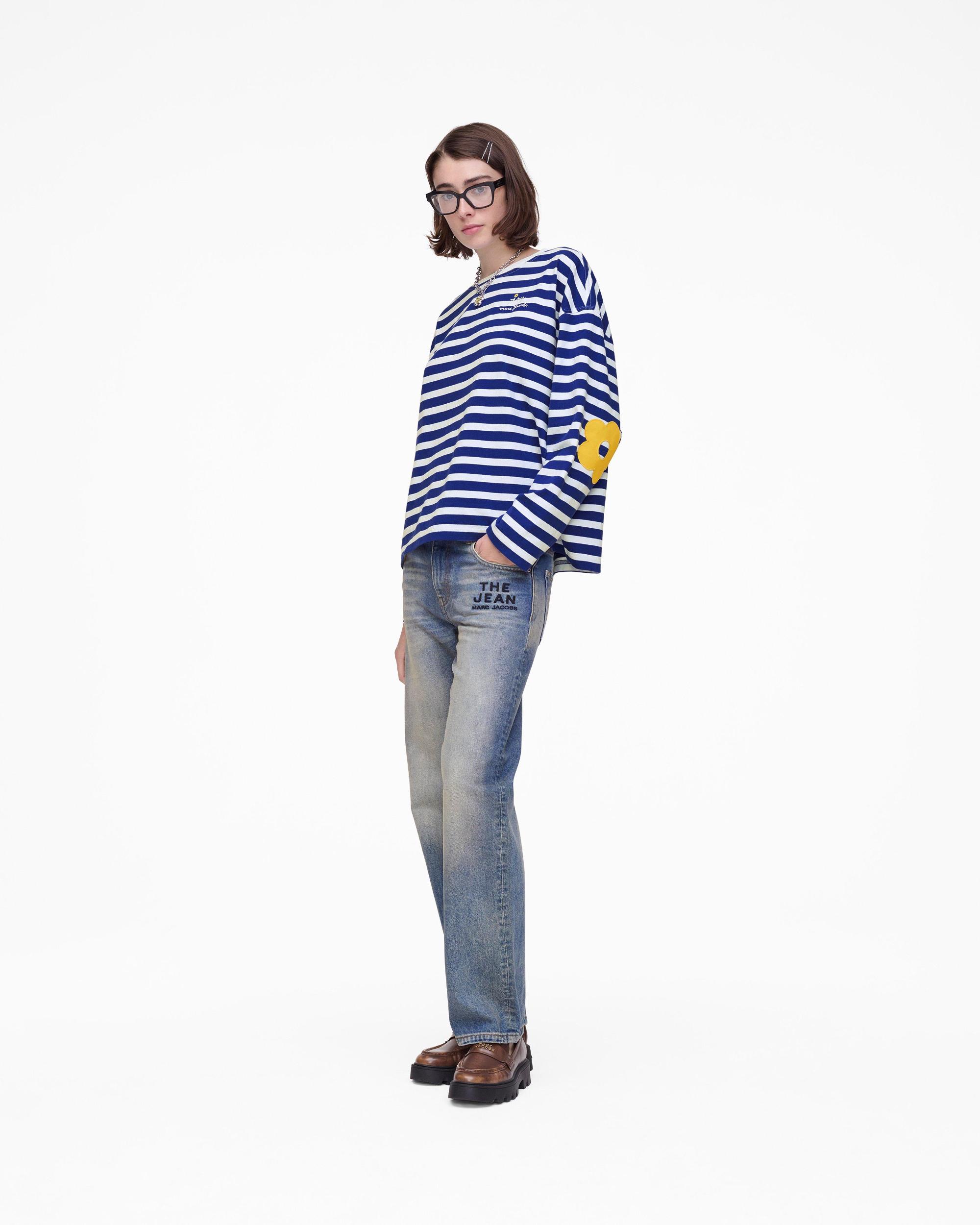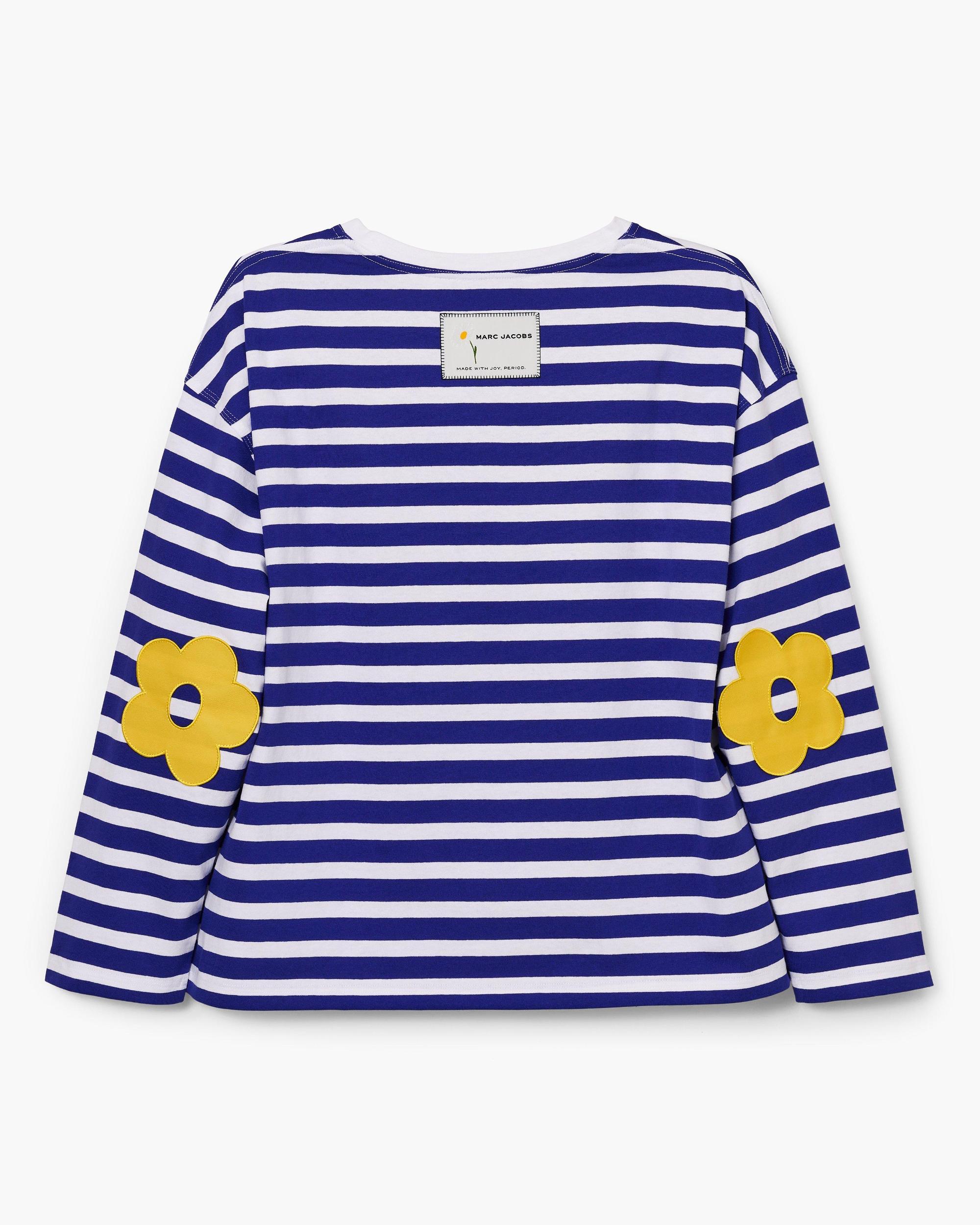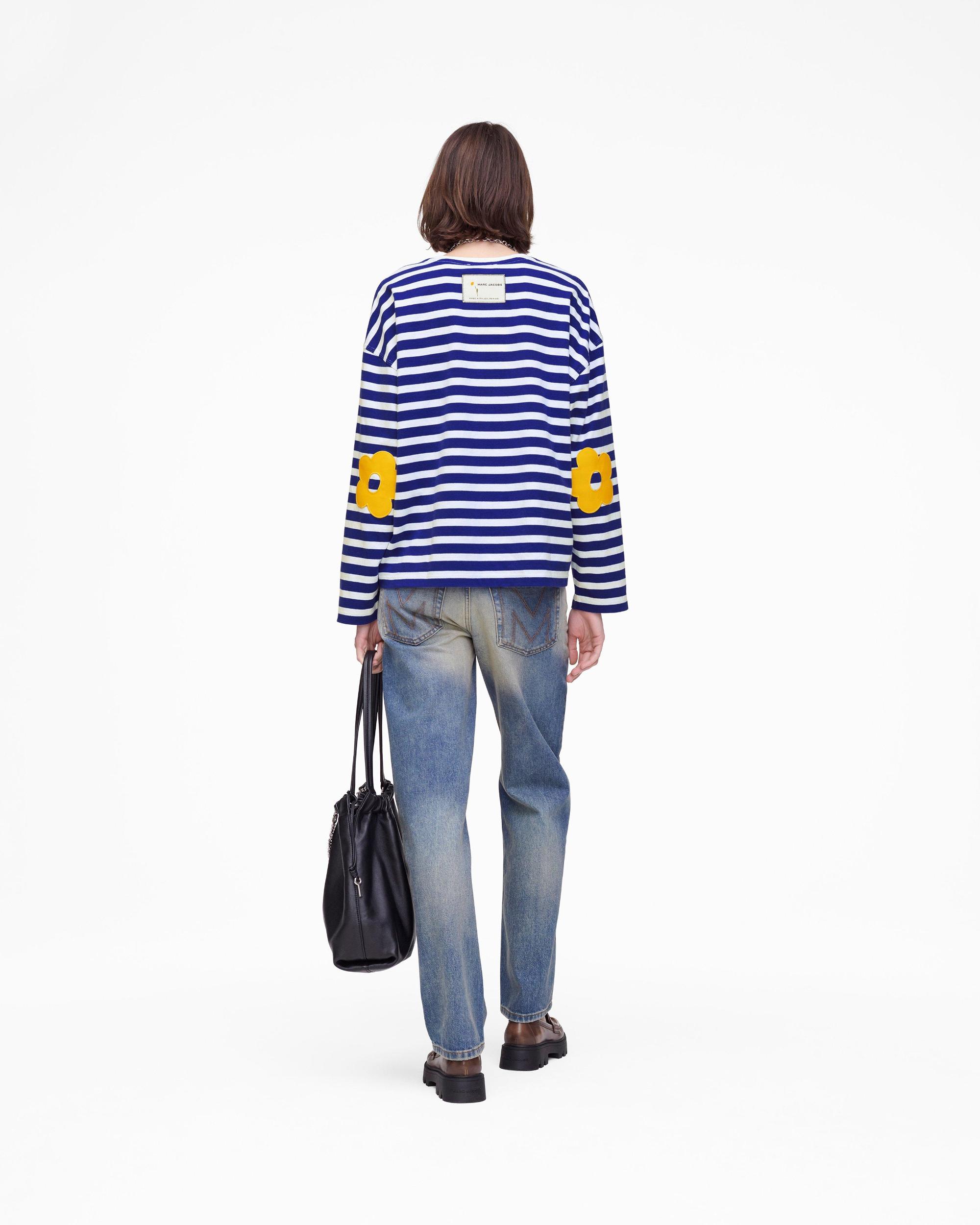 Playful yet polished, the Daisy Striped Longsleeve brings a touch of whimsy to classic stripes. Featuring drop shoulders and embroidered daisy elbow patches in cotton toile, it blends comfort with unexpected detail. “JOY” and “MARC JACOBS” are embroidered at the chest, while an artisanal label at the back neck adds a distinctive, seasonal touch. Shop Marc Jacobs Daisy Striped Longsleeve