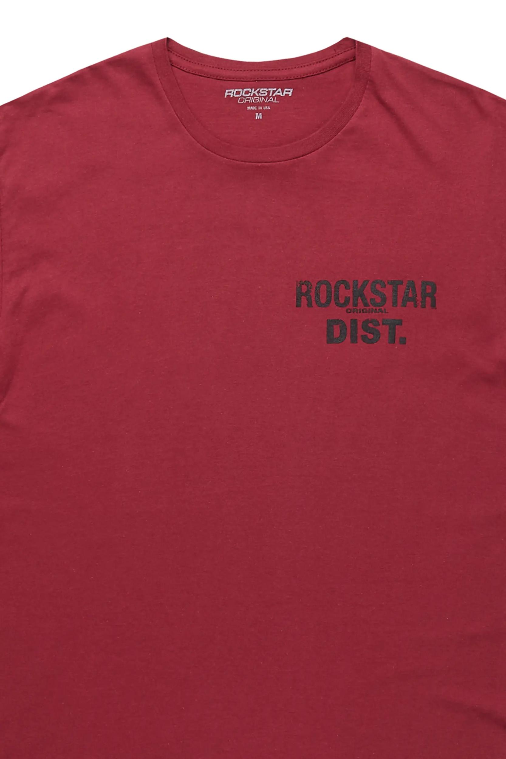 A chic streetwear t-shirt for women in burgundy. Designed with organic cotton and a custom vintage-inspired graphic logo for the perfect staple piece tee. Crew neckline Short sleeves Printed graphic RSO logo Pullover style Oversized-fit