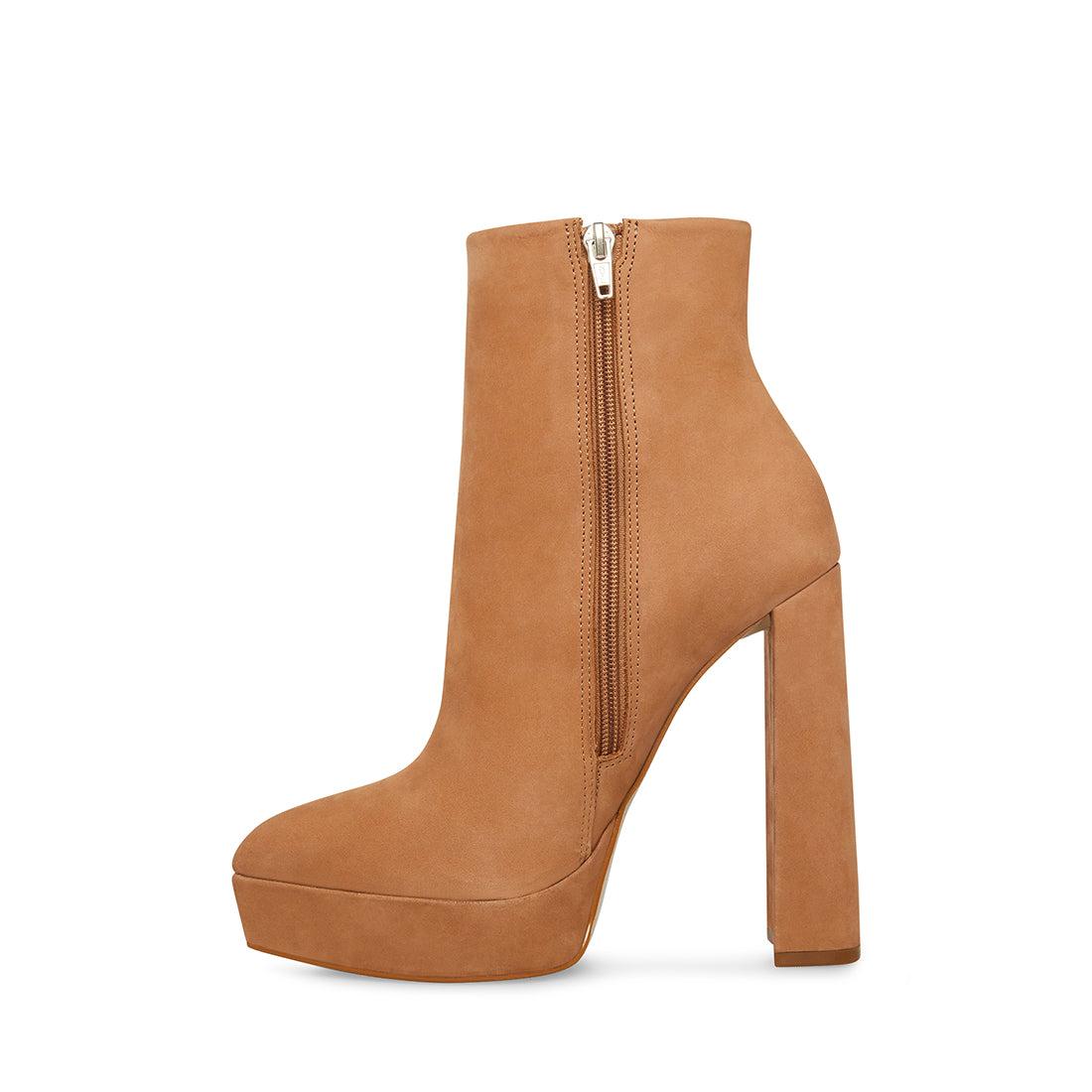 SLEEK + DRAMATIC + SEXY The DALINA leather ankle boots are elevated on a high block heel with a front platform, finished with a point toe. Leather platform heel booties Side zipper closure Block heel with front platform Point toe 5.25 inch heel height 1 inch platform 9.5 inch shaft circumference 4.75 inch shaft height Nubuck leather upper material Synthetic and textile lining Synthetic sole Imported