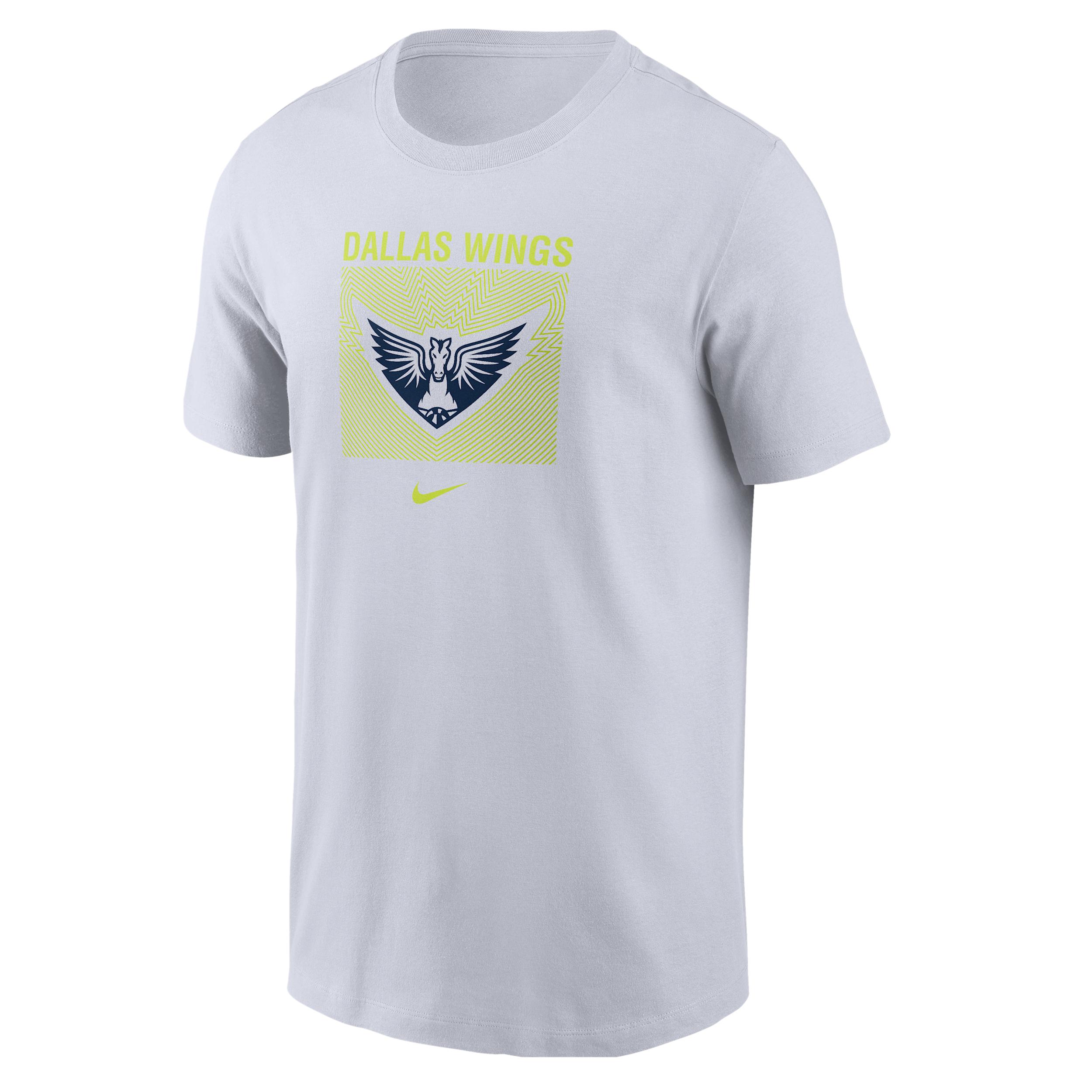 Show love for the Dallas Wings on game day and beyond in this classic-fit tee. Product Details:100% cotton. Machine wash. Imported. Style: M11332WDAL; Color: White; Size: M; Gender: Male; Age Group: Adult | Dallas Wings Men's Nike WNBA T-Shirt in White, Size: Medium | M11332WDAL-WHT
