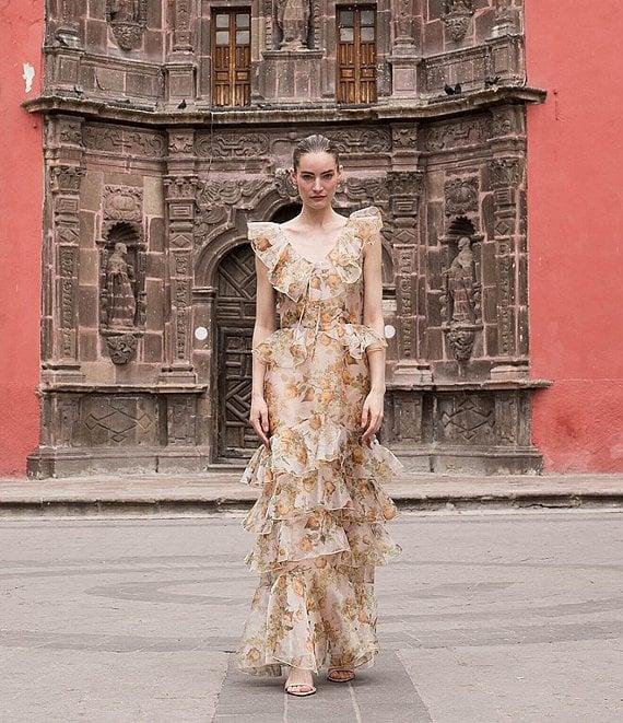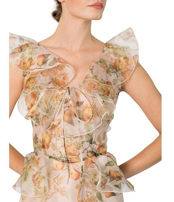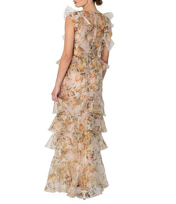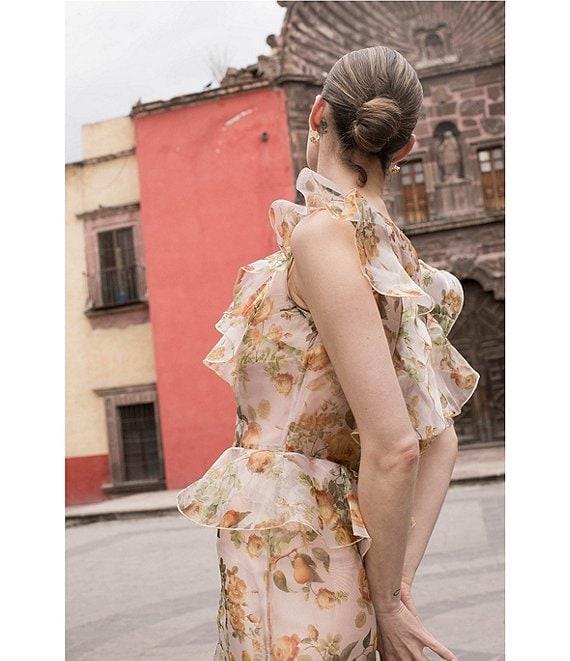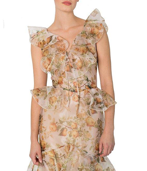 Damaris Bailey Carmen Flora Print Scoop Neck Sleeveless Ruffle Organza Dress